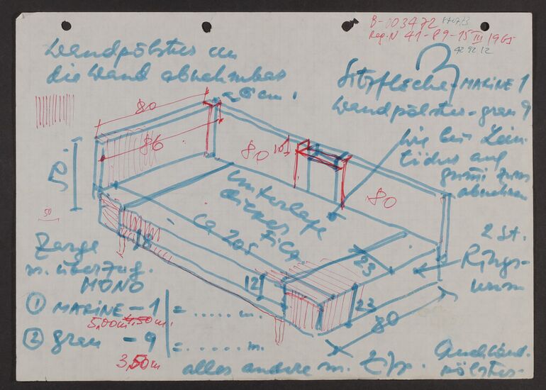 sketch, Recto zwei Skizzen der Stiege, Verso Detail des Handlaufs, Anna-Lülja Praun, MAK Inv.nr. KI 16475-6-34