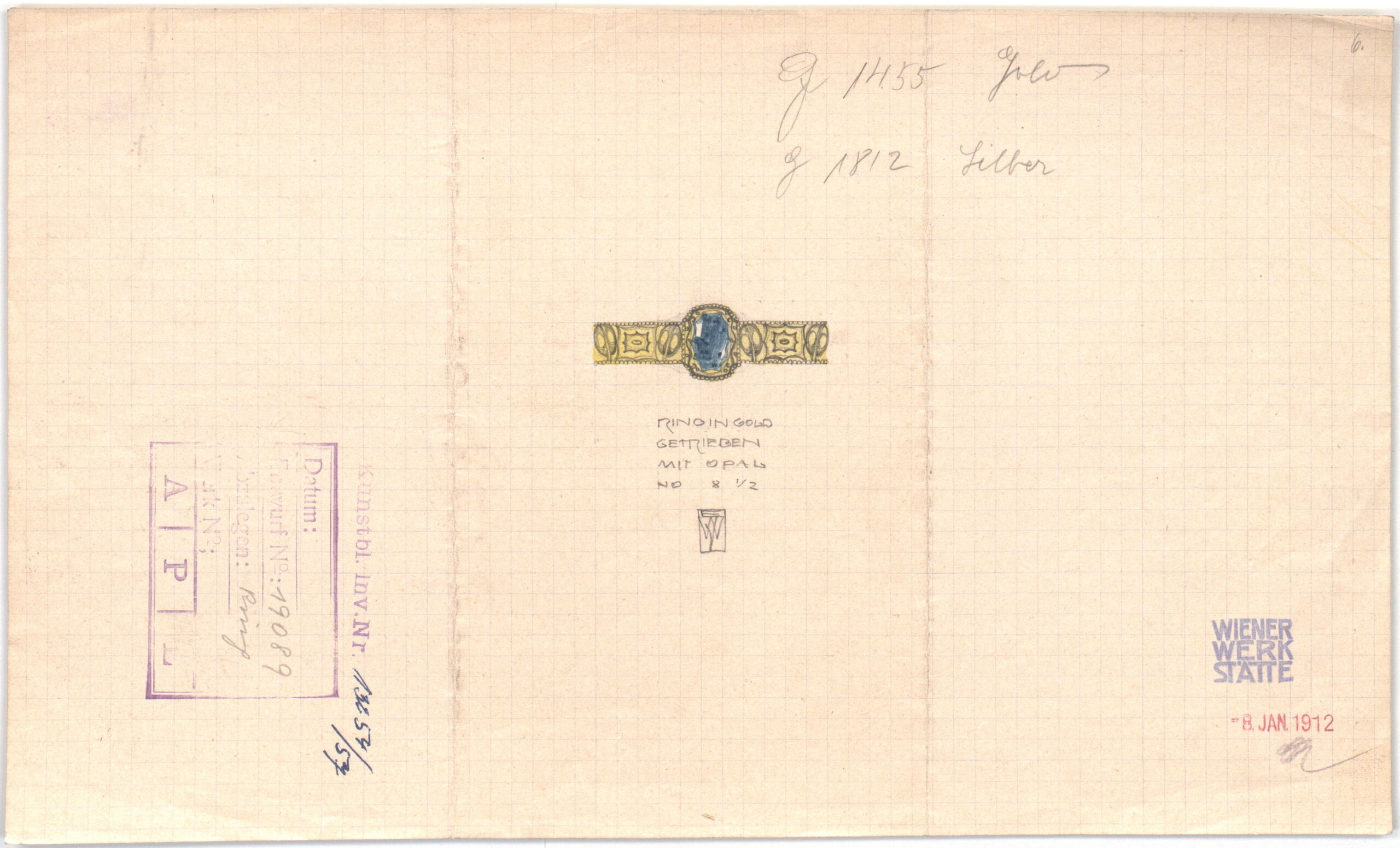 - text on object: „Ring in Gold getrieben mit Opal No. 8 1/2“ Stempel/inventarisiert: 8. Jan.1912