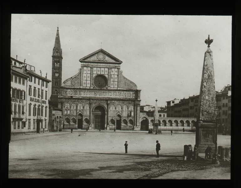 - sticker / adhesive label: Seitenaltar v. St. Croce in Florenz 64. B. REIFFENSTEIN, WIEN, VIII. Bennogasse 24.