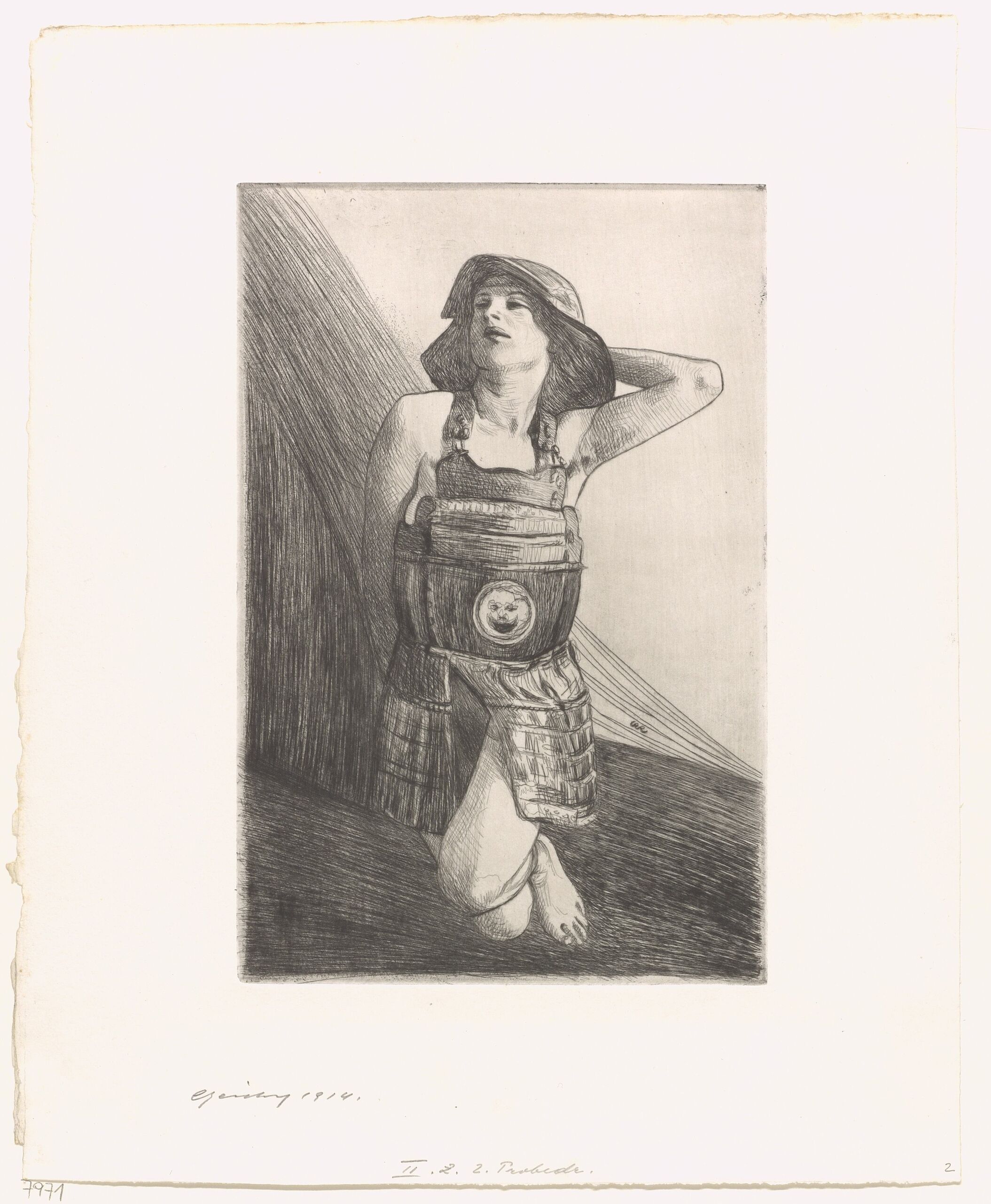 Druckgrafik, Schauspielerin in einer Rüstung im Stil japanischer Samurais, Karl Anton Reichel, MAK Inv.nr. KI 7971