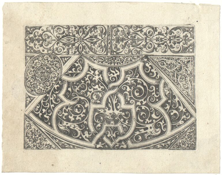 - Schweifwerkarabeske mit Bandelwerk, Blatt 6 aus der Folge „Une Livre contenant Passement de Moresques etc.“ (given title)