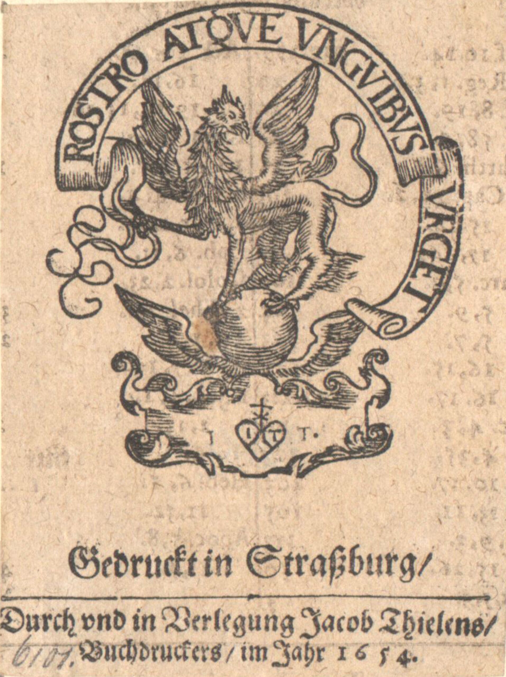 - text on object: Gedruckt in Straßburg/ Durch und in Verlegung Jacob Thielens/ Buchdruckers im Jahr 1654
