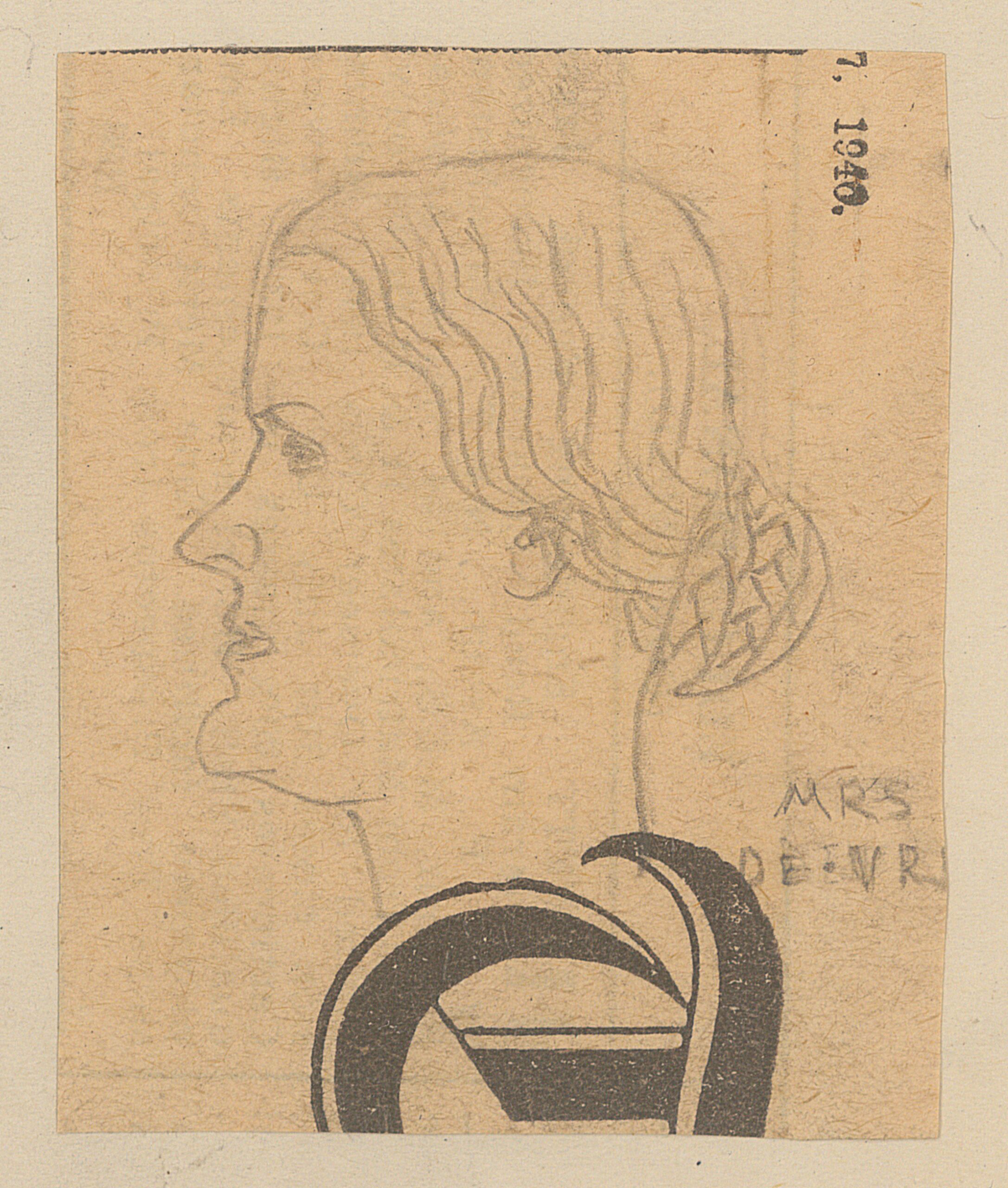 sketch, Skizze mit der Darstellung eines Frauenkopfes im Profil, Viktor Lurje, MAK Inv.nr. KI 10455-3-17