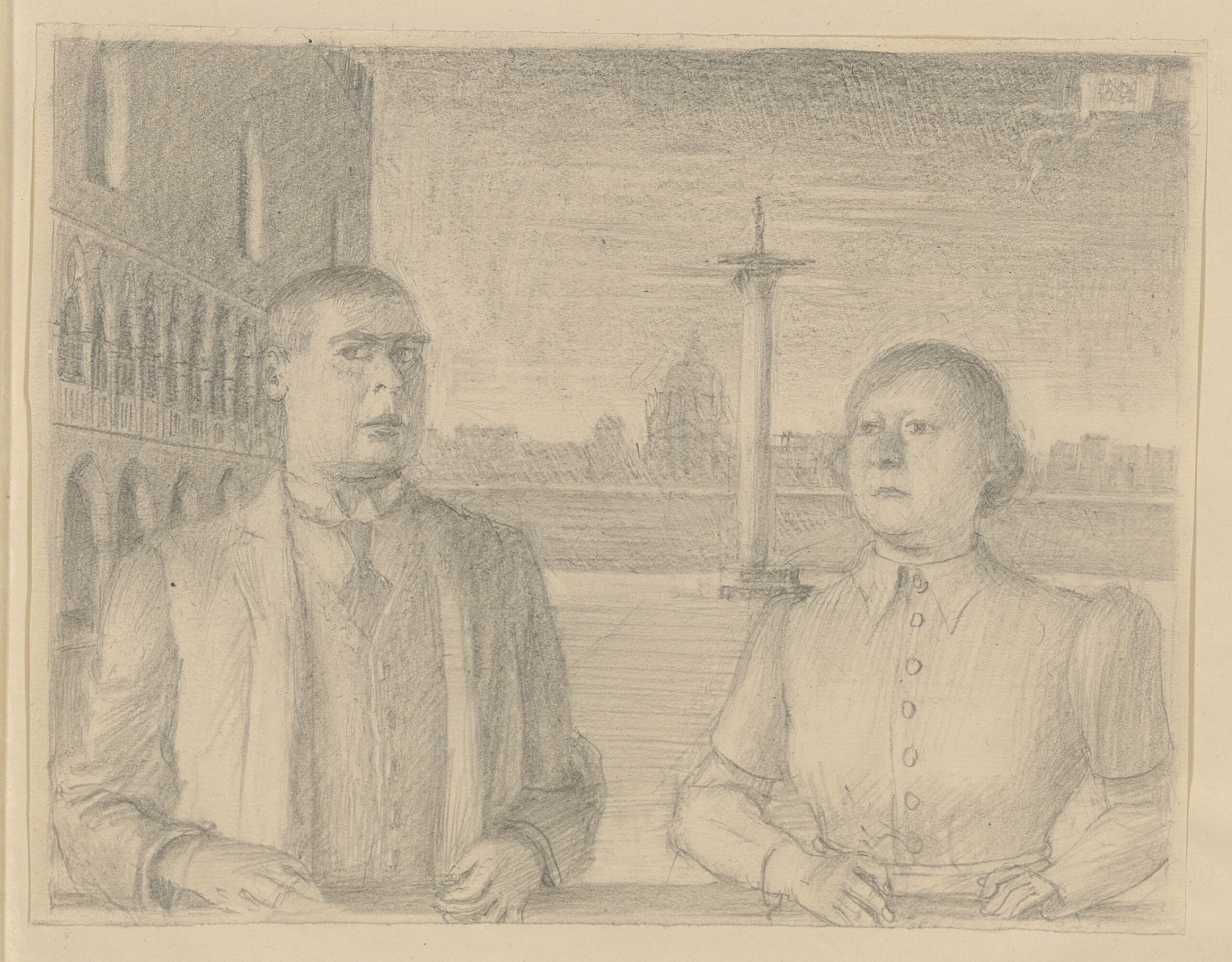 - Skizze mit der Darstellung eines Paares (Ehepaar Selzer?) vor dem Dogenpalast zu Venezia (given title)