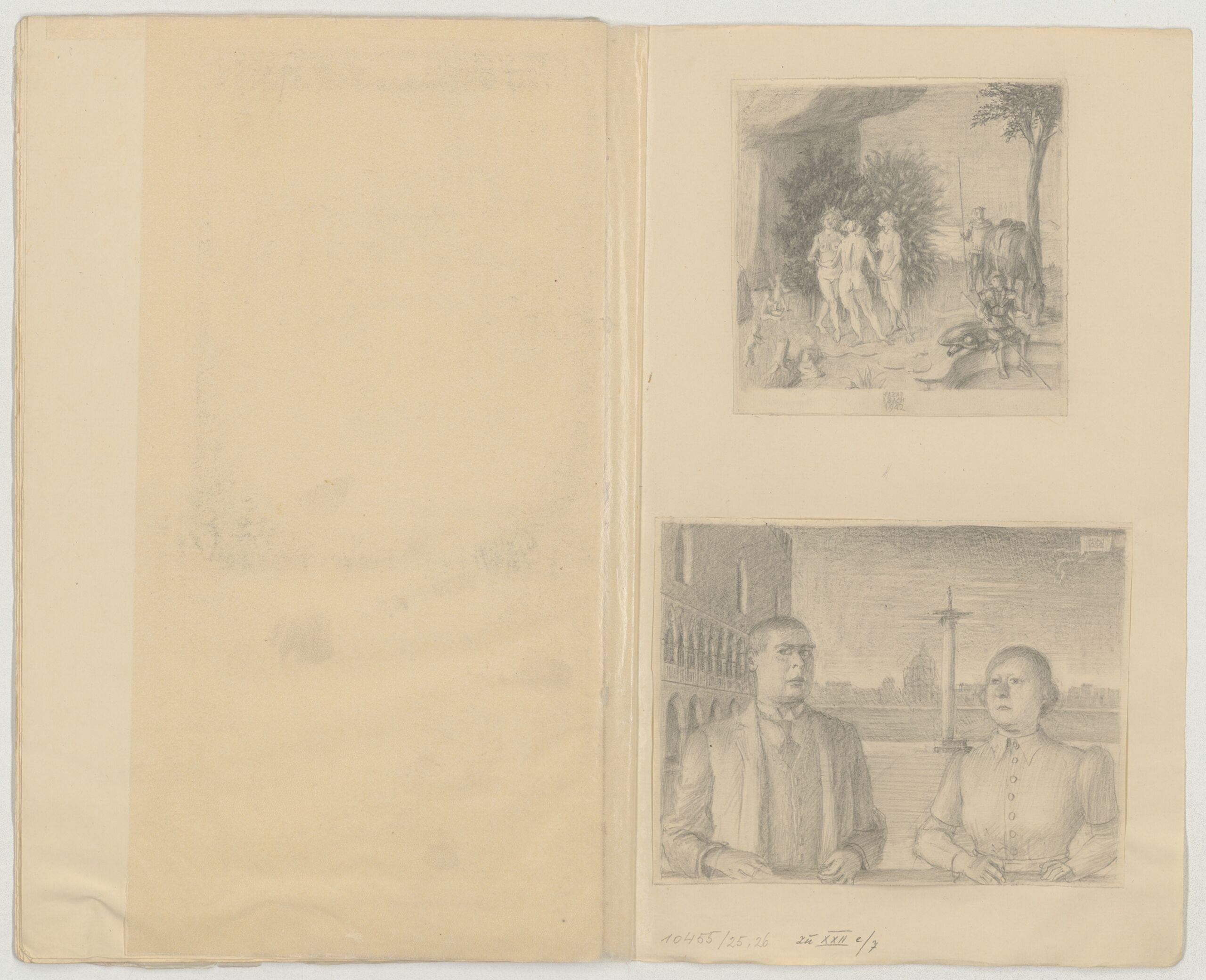 sketch, Skizze mit der Darstellung eines Paares (Ehepaar Selzer?) vor dem Dogenpalast zu Venezia, Viktor Lurje, MAK Inv.nr. KI 10455-3-26