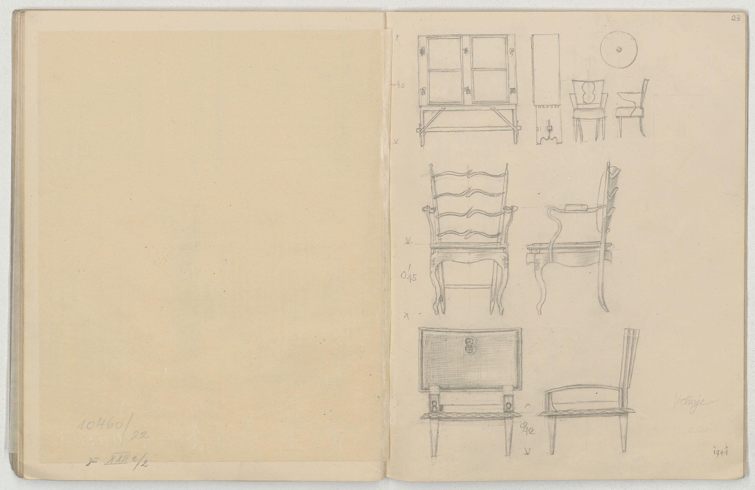 sketch, Skizzen zu Kredenzen und Sitzmöbeln, Viktor Lurje, MAK Inv.nr. KI 10460-2-23