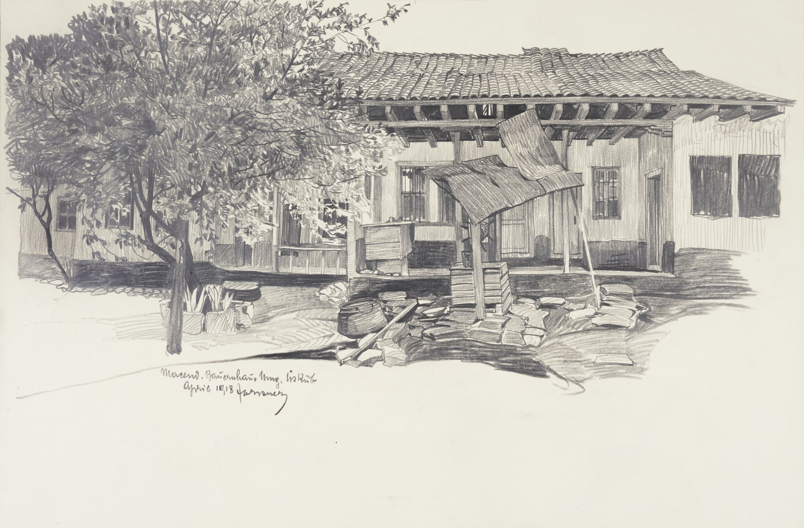 - text on object: Maced. Bauernhaus Umg.[ebung] Üsküb / April 1918