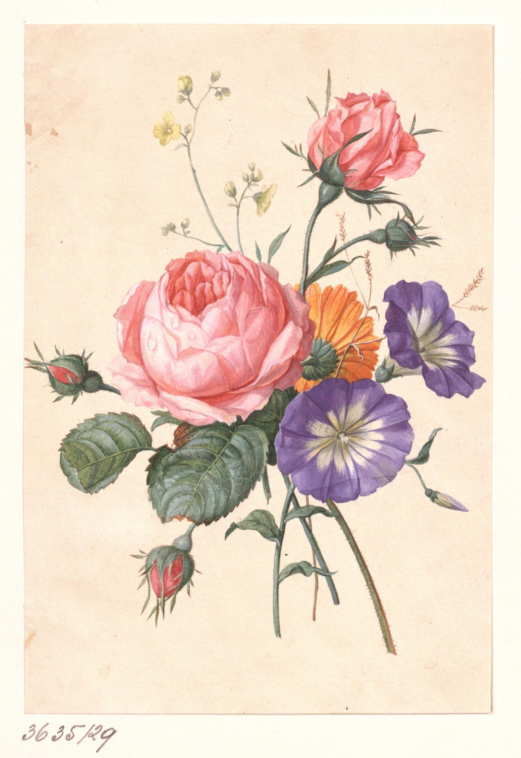 flower illustration, Studie zu einem Blumenstrauß, Sebastian Wegmayr, MAK Inv.nr. KI 3635-29