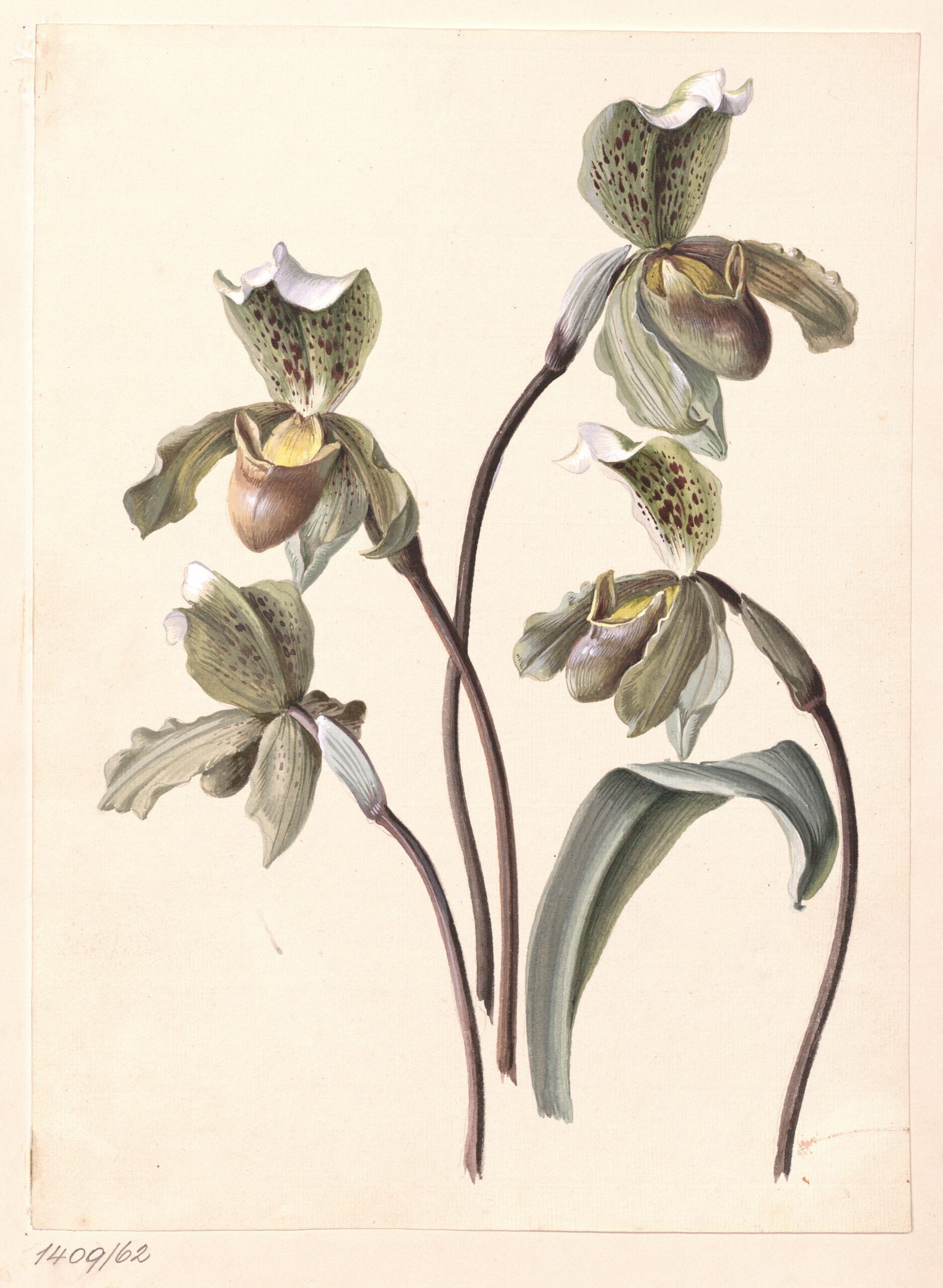 flower illustration, Studie zu Orchideen (Frauenschuh), Sebastian Wegmayr, MAK Inv.nr. KI 1409-62