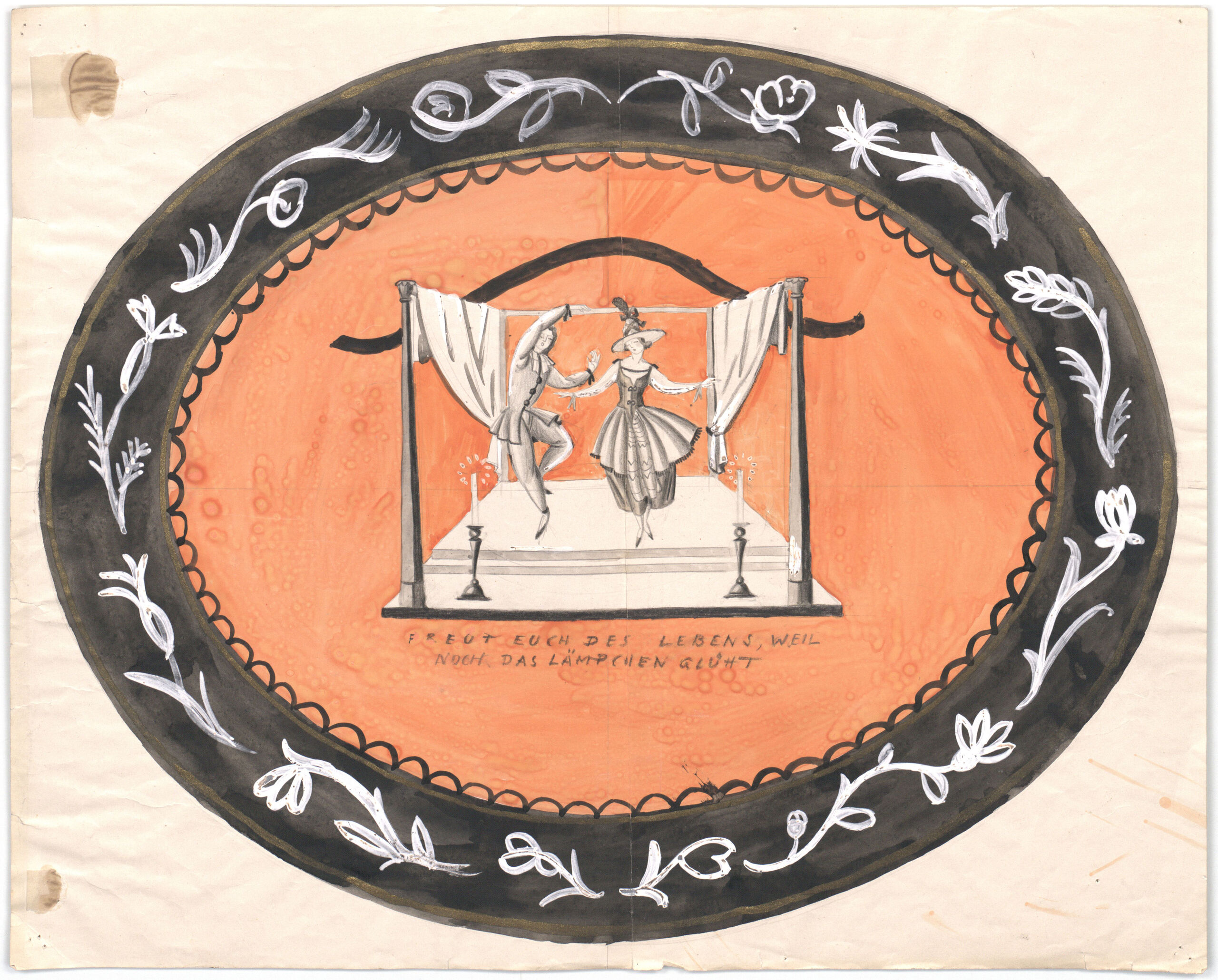 - text on object: FREUT EUCH DES LEBENS, WEIL NOCH DAS LÄMPCHEN GLÜHTverso: Malerei/Blech