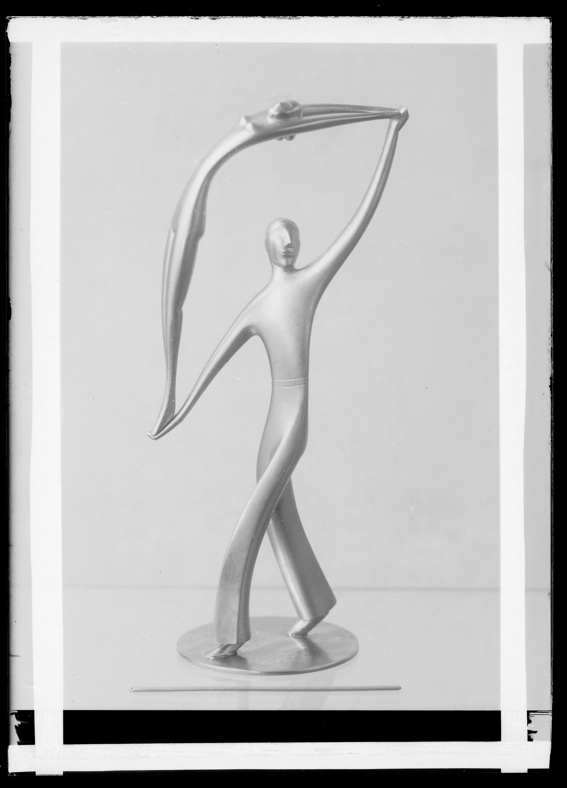 Fotoplatte, Tanzpaar: männliche Figur hält schwebende Partnerin an Händen und Füßen zwischen seinen ausgebreiteten Armen in der Luft, Werkstätte Hagenauer, MAK Inv.nr. HAGP 4-1112