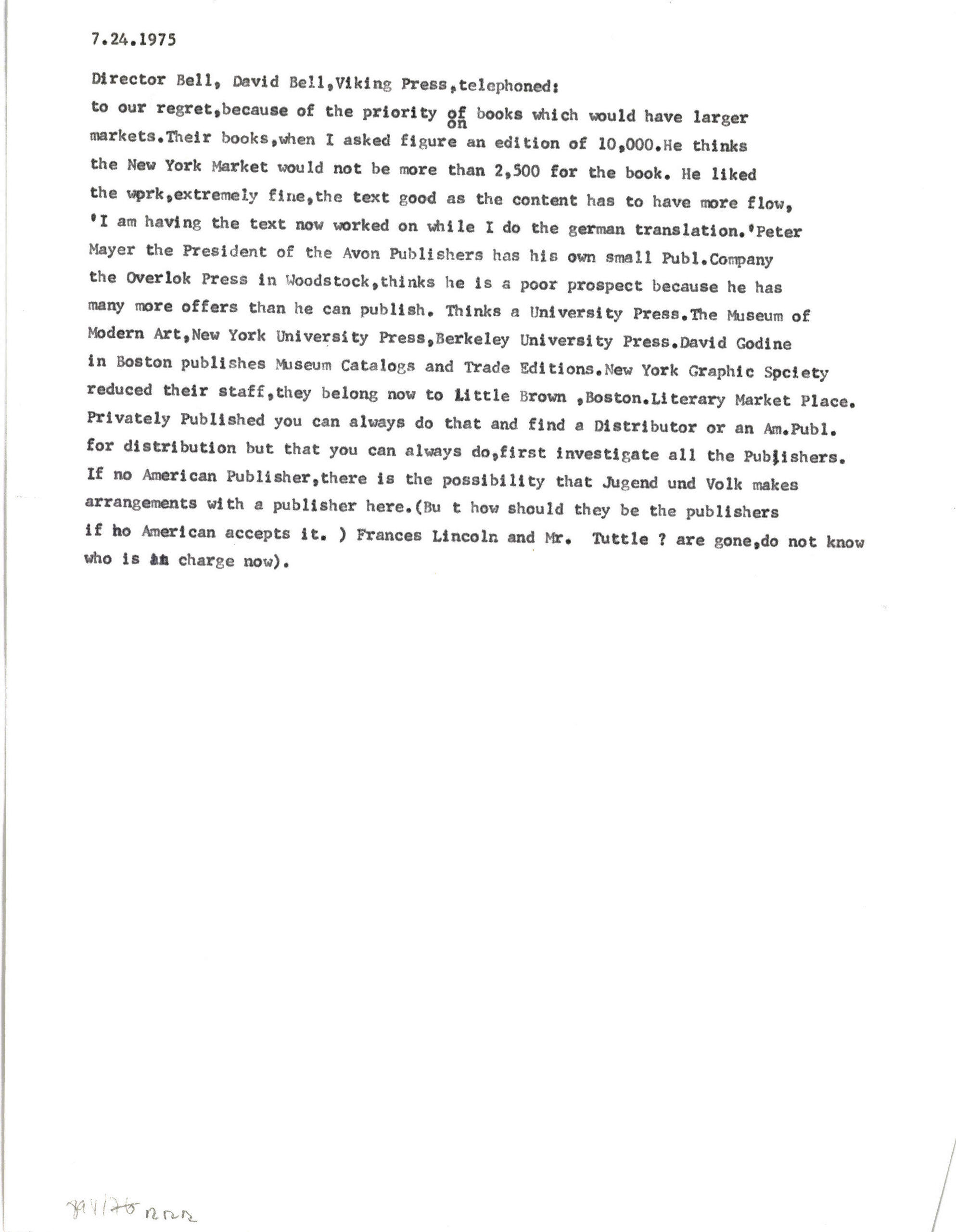 log, Telefonprotokoll eines Telefonates zwischen Carla Binder und Herrn Bell, Carla Binder, MAK Inv.nr. KI 14145-894-66-1