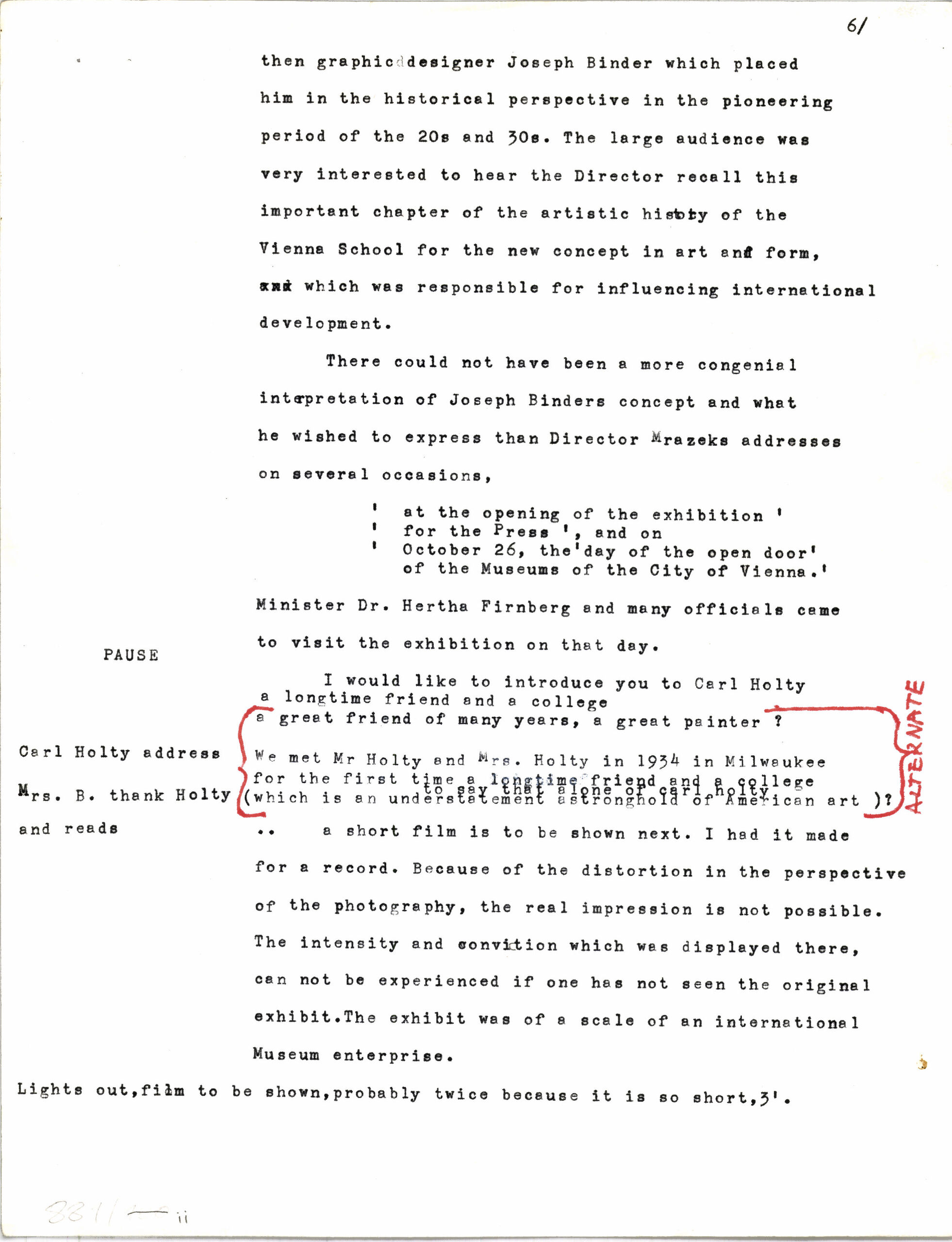 design, Text des Vortrages über die Ausstellung "Joseph Binder. Nonobjective Art" im Österreichischen Museum für angewandte Kunst, MAK vom 15.9. bis 29.10.1972 im Austrian Institute am 19.12.1972, Carla Binder, MAK Inv.nr. KI 14145-881-35-7