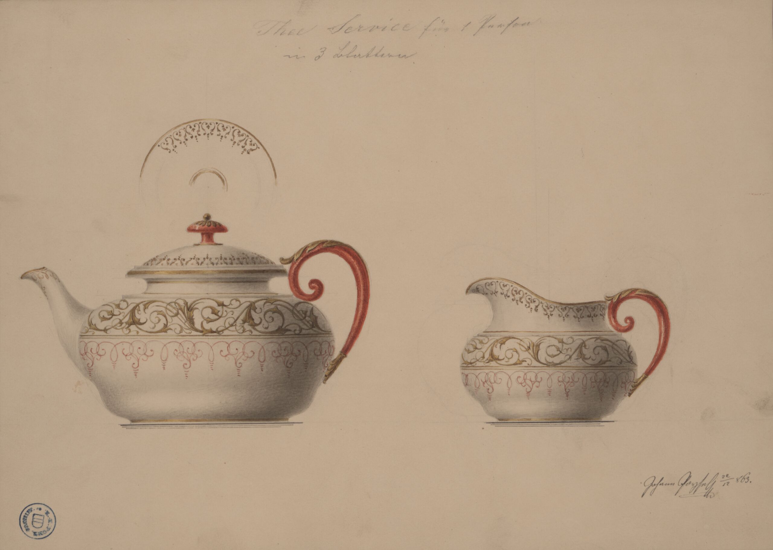 - text on object: Thee Service für 1 Person / in 3 Blättern / Johann Poysel 22. 12. 863.