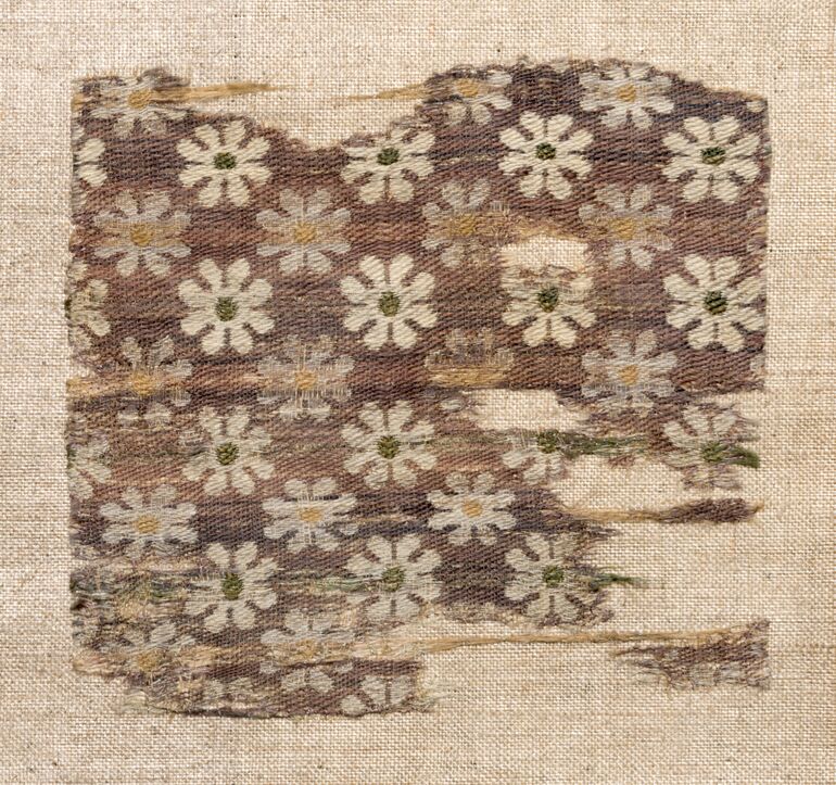 woven textile fragment, Two decorative bands; animals, centaurs and hippocamps in medallions, human figures under arcades, Anonym, MAK Inv.nr. T 10819-1