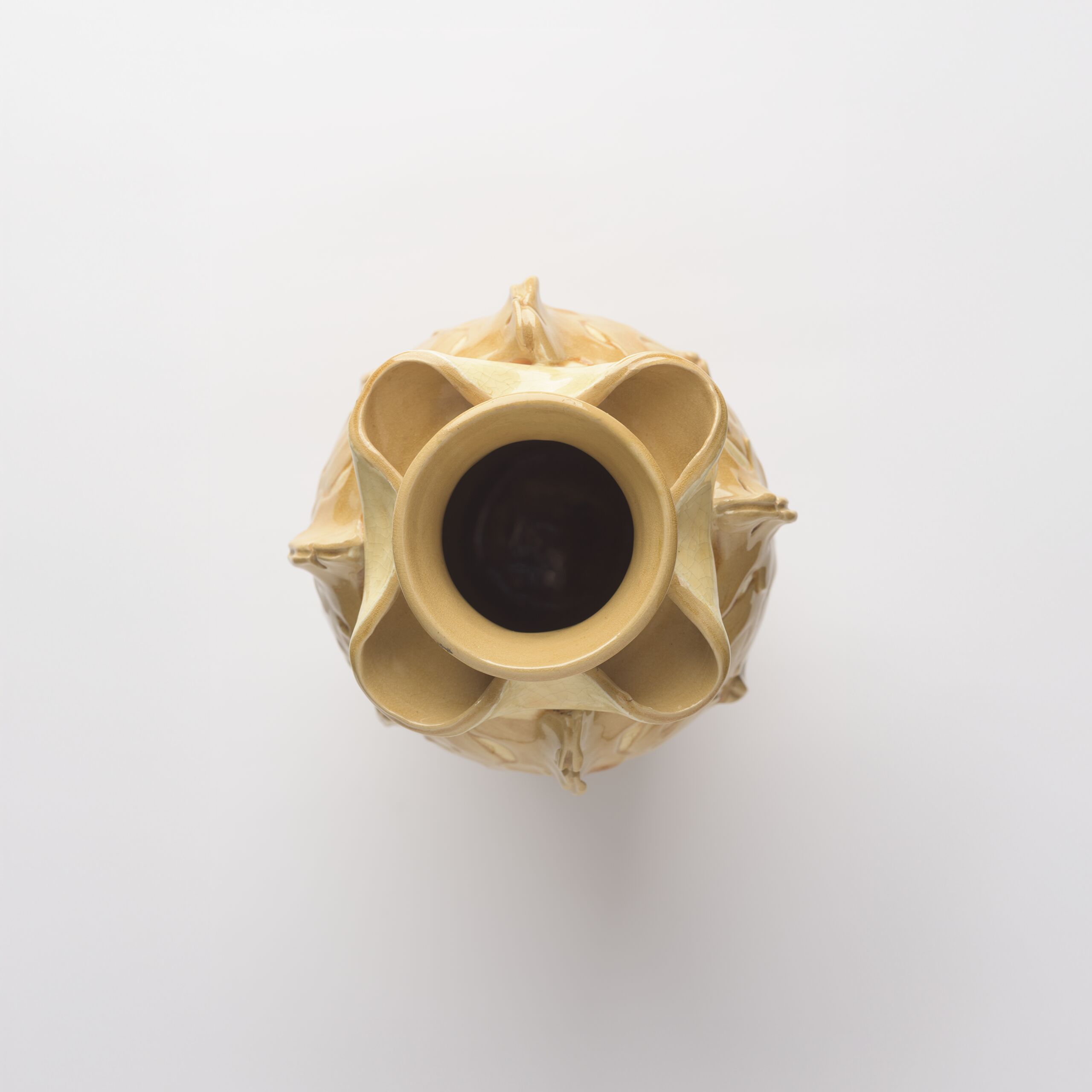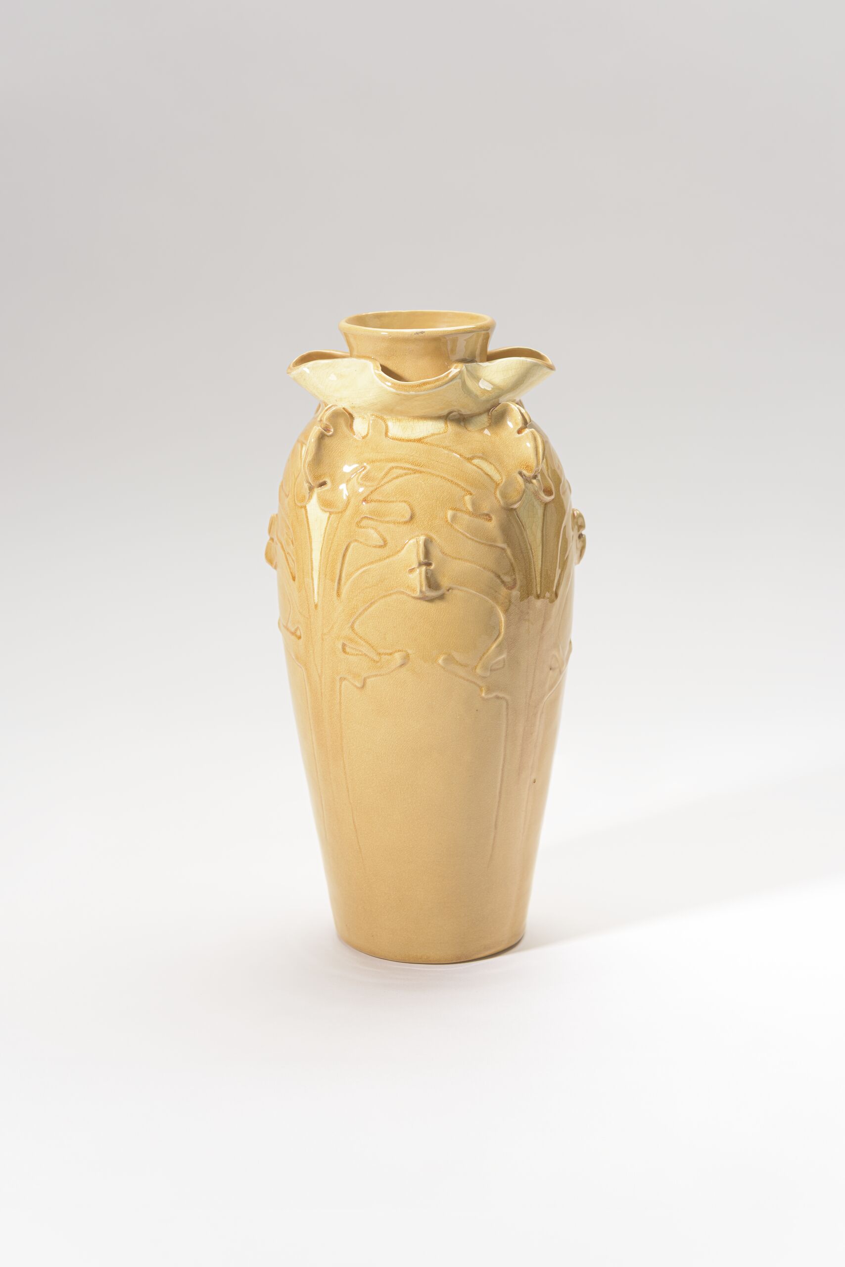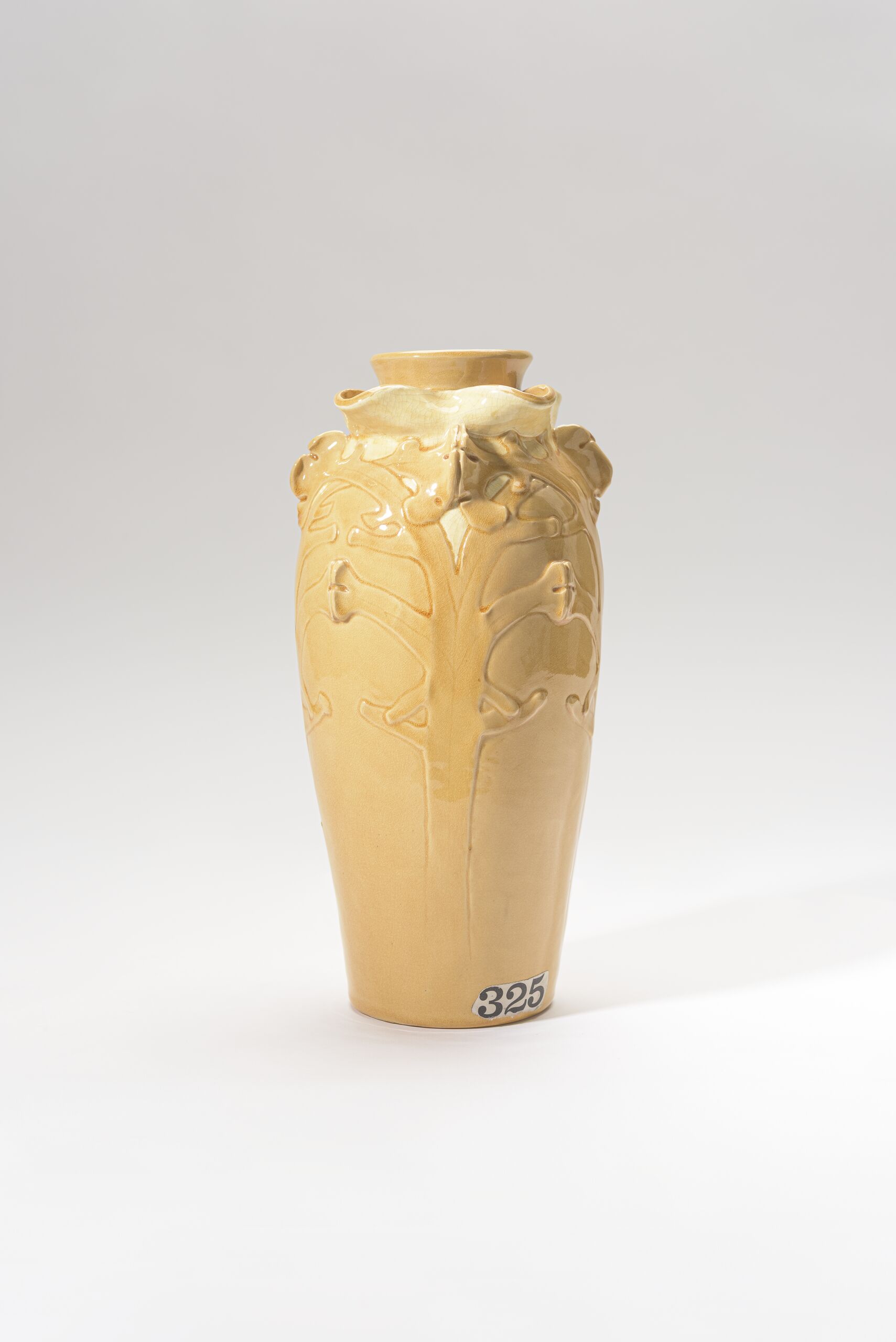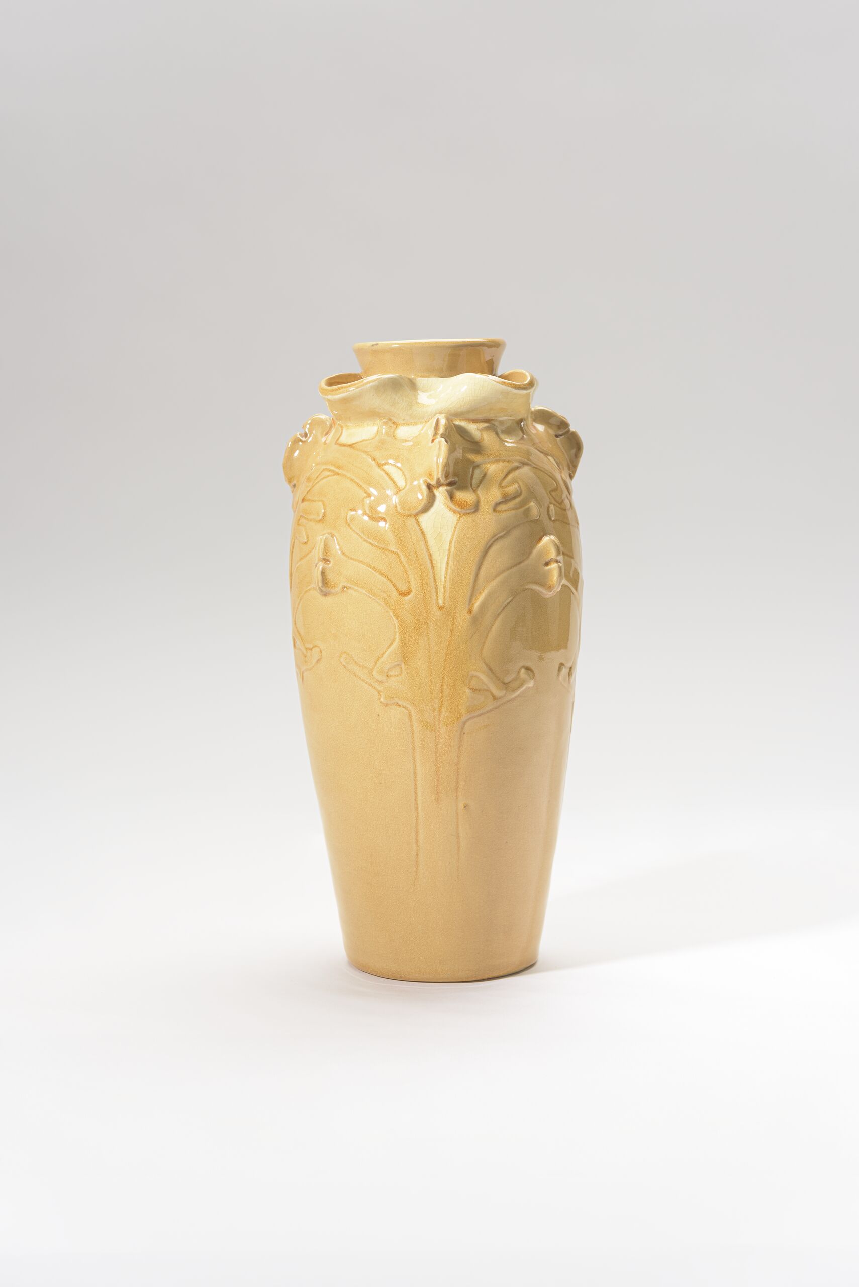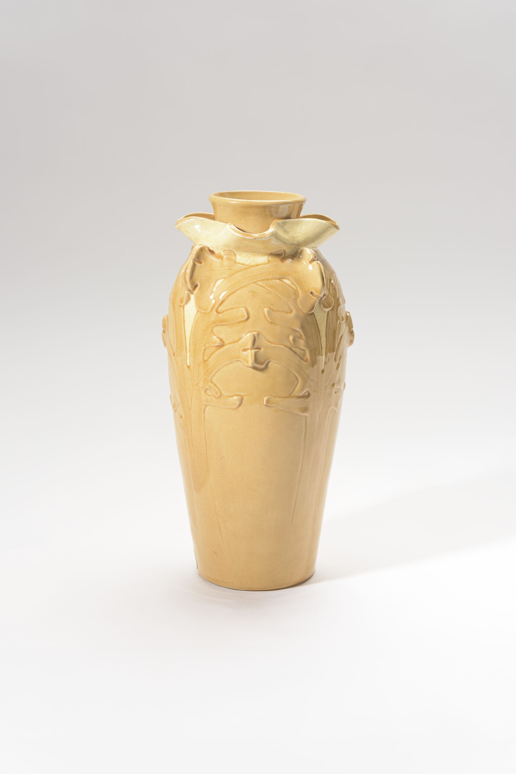 gelb, mit ornamentalem Blattdekor in Relief aufgelegt