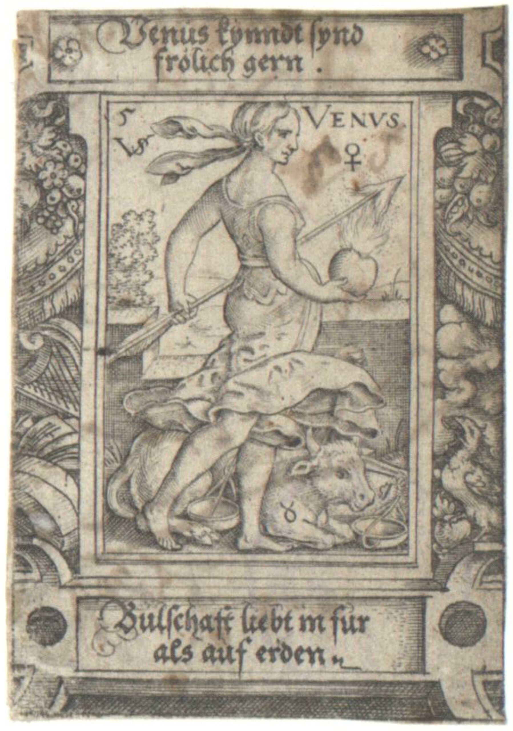 - text on object: Venus kynndt synd frölich gern. Bulschaft liebt in für als auf erden. / 5 Venus / Monogramm VS