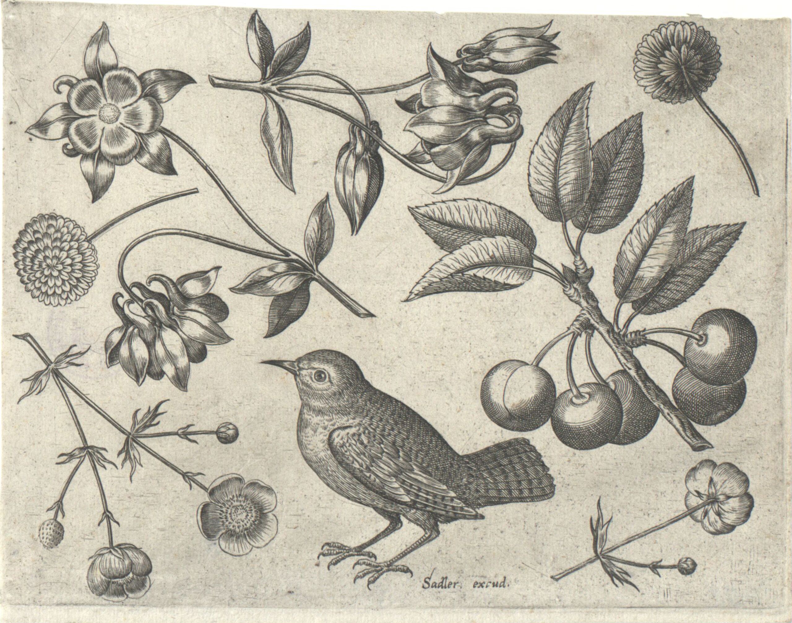 Druckgrafik, Verschiedene Blumen und ein Vogel, Johann Sadeler, MAK Inv.nr. KI 3603-10
