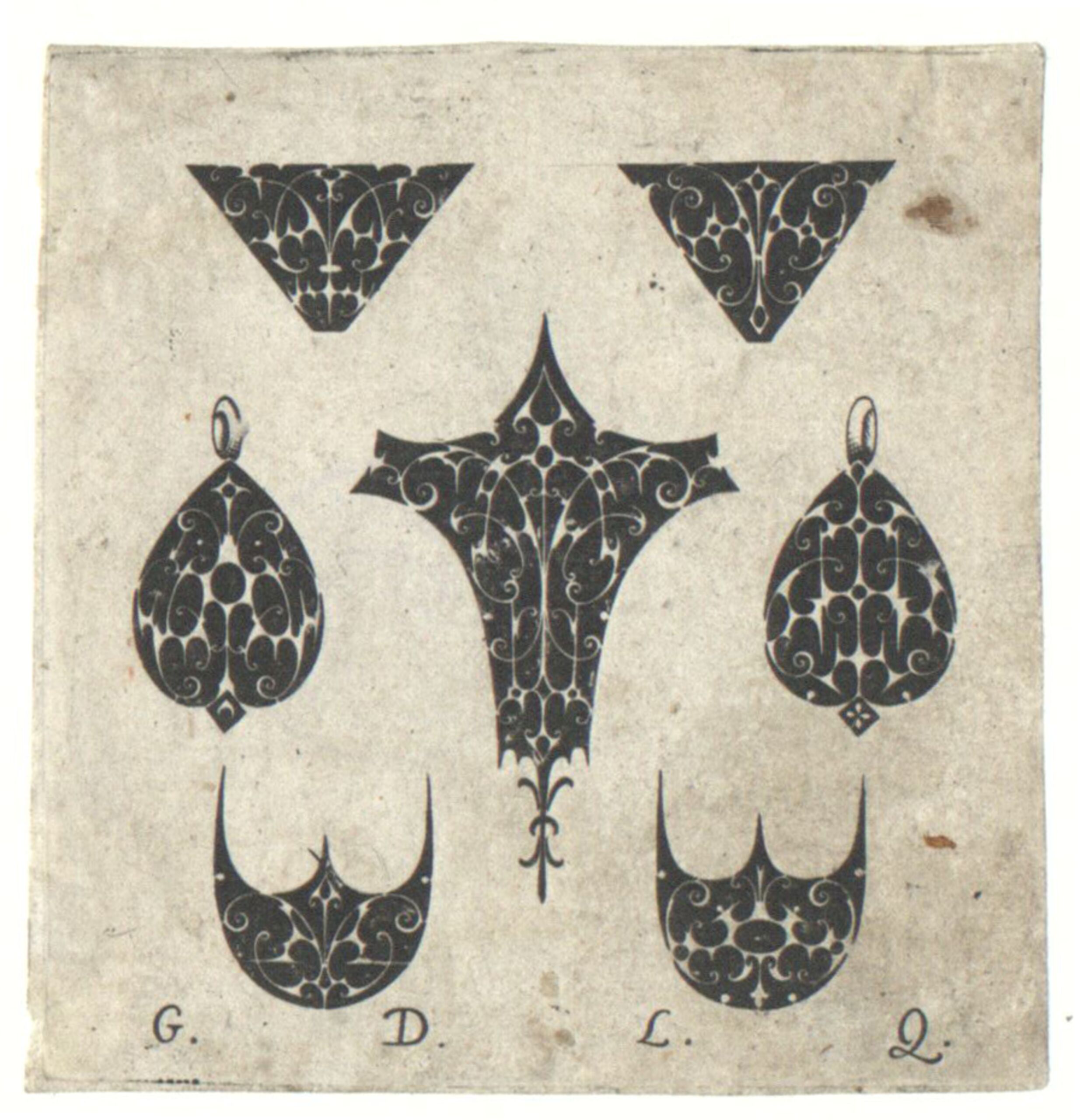ornamental engraving, Verschiedene Goldschmiedeornamente, Blatt aus einer Folge von nielliertem Goldschmiedeornament mit dem Titel „Ni capis, non carpis“, Schwarzornament, Guillaume de La Quewellerie, MAK Inv.nr. KI 2735-6
