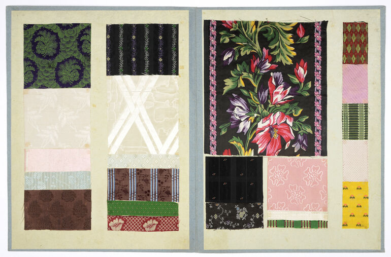 - label (front) : Aus der Mestrozischen Seidenzeugfabrik in Wien, 1820. / Verschiedene Seidenstoffe.