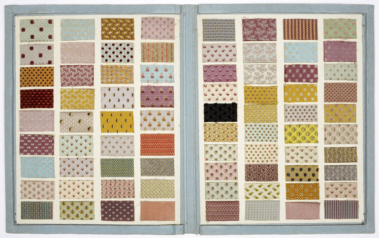 swatch board, Verschiedene Seidenstoffe, Gebrüder Mestrozi, MAK Inv.nr. TGM 23055
