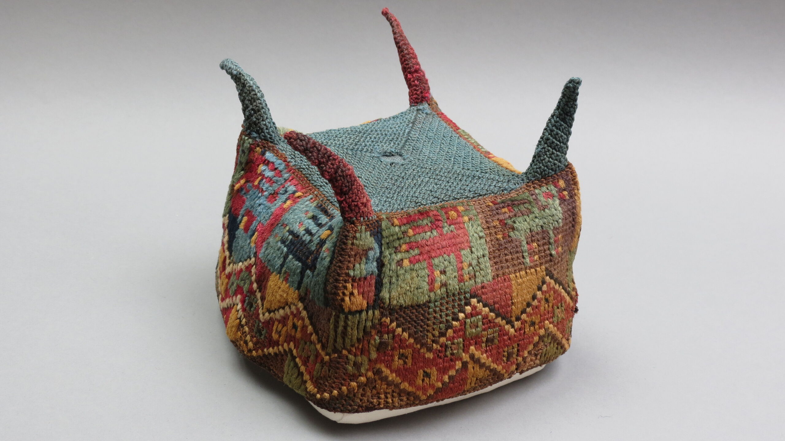 - Vierzipfelige Haube mit bunten ornamentalen Mustern (descriptive title)