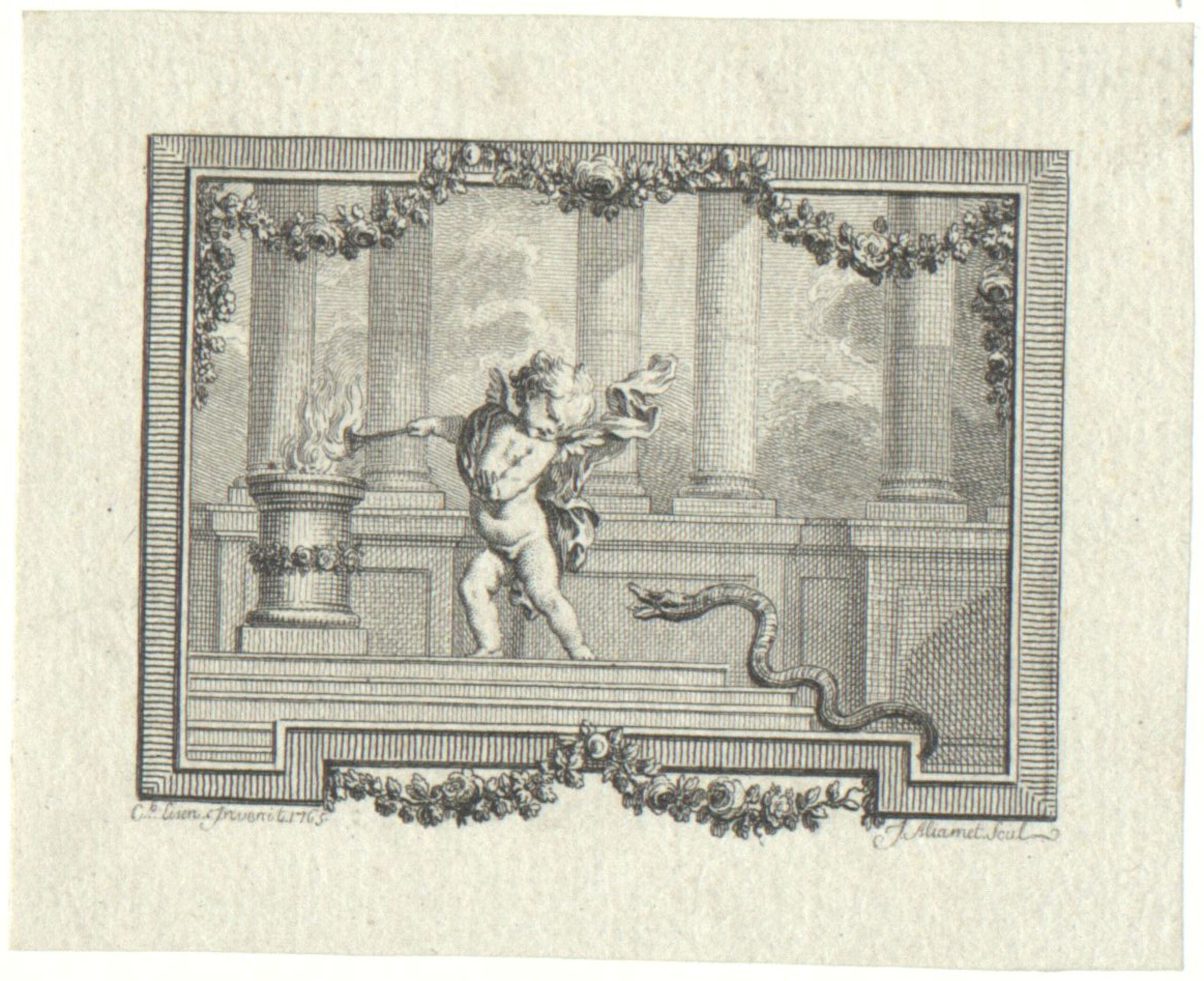 - text on object: Ch... Eisen Invenit 1765 / J. Aliamet Scul.
