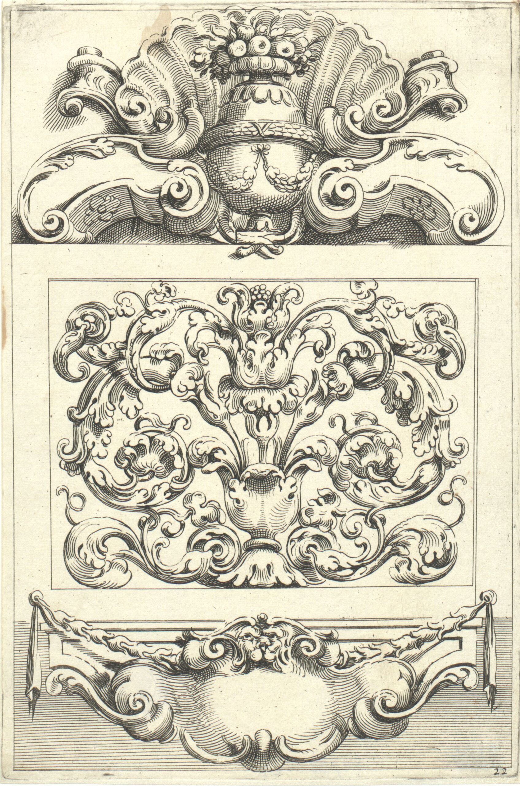 - Wandfüllung, Blatt 22 einer Folge von Kartuschen und Wandfüllungen, auf Blatt 1 die Widmung an Franco Maria Zambeccari, herausgegeben von Mariette (given title)