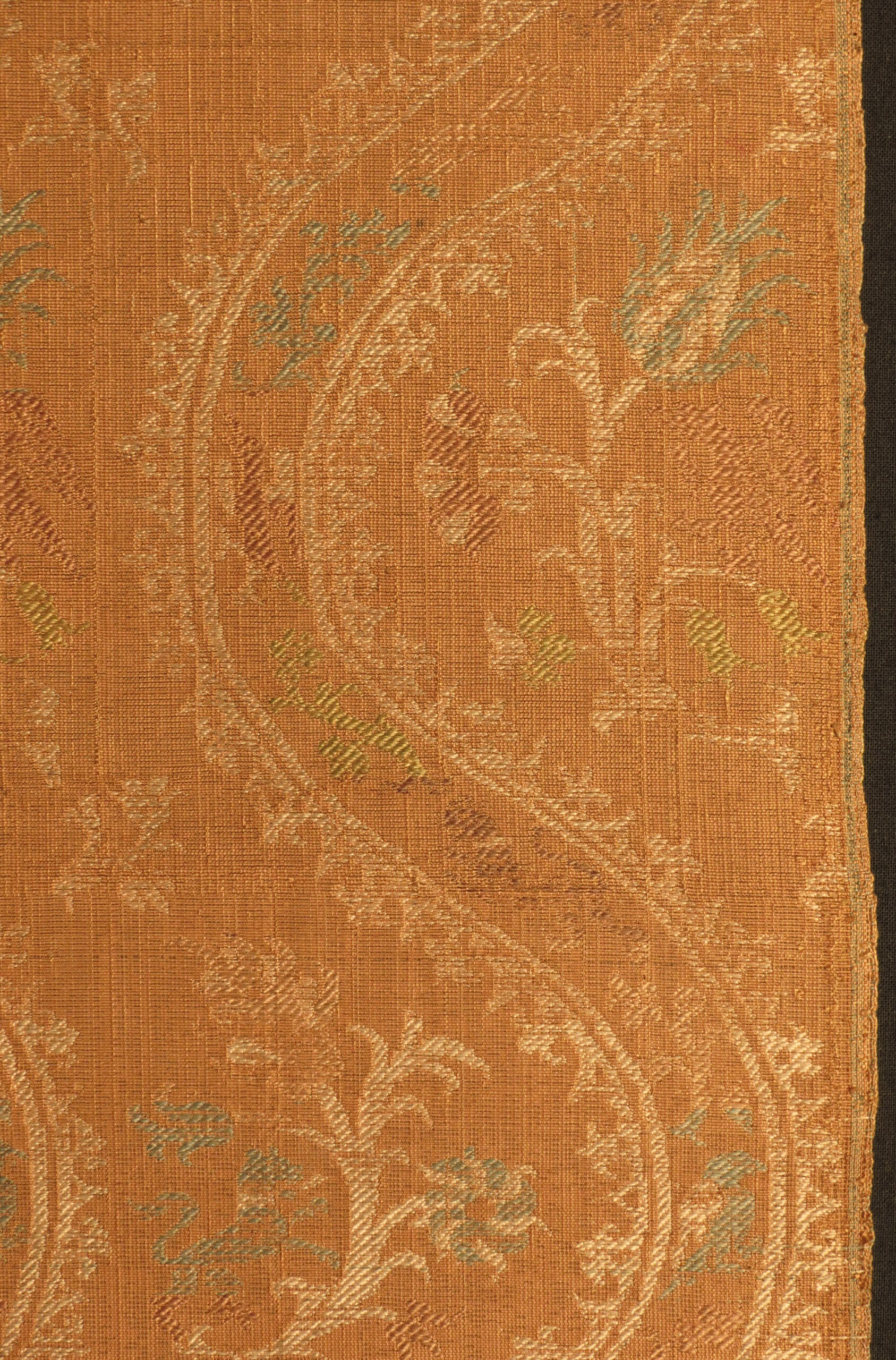 - Weißen Ranken, bunte Blumen und Tieren auf braunem Grund