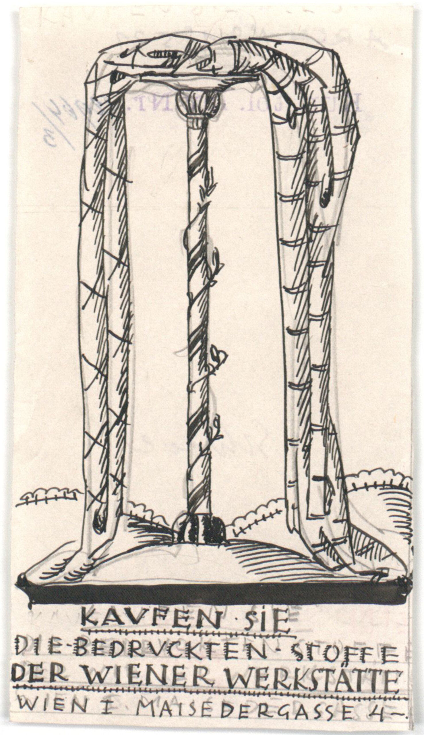 - text on object: „Kaufen Sie die bedruckten Stoffe der Wiener Werkstätte, Wien I., Maisedergasse 4“verso: Schröder