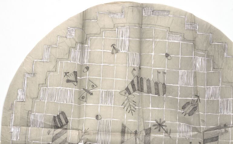 - text on object: Dessin: „Blütenblätter“Entwurf: RixDruckstoff, (Gaze), (Crêpe Georgette)