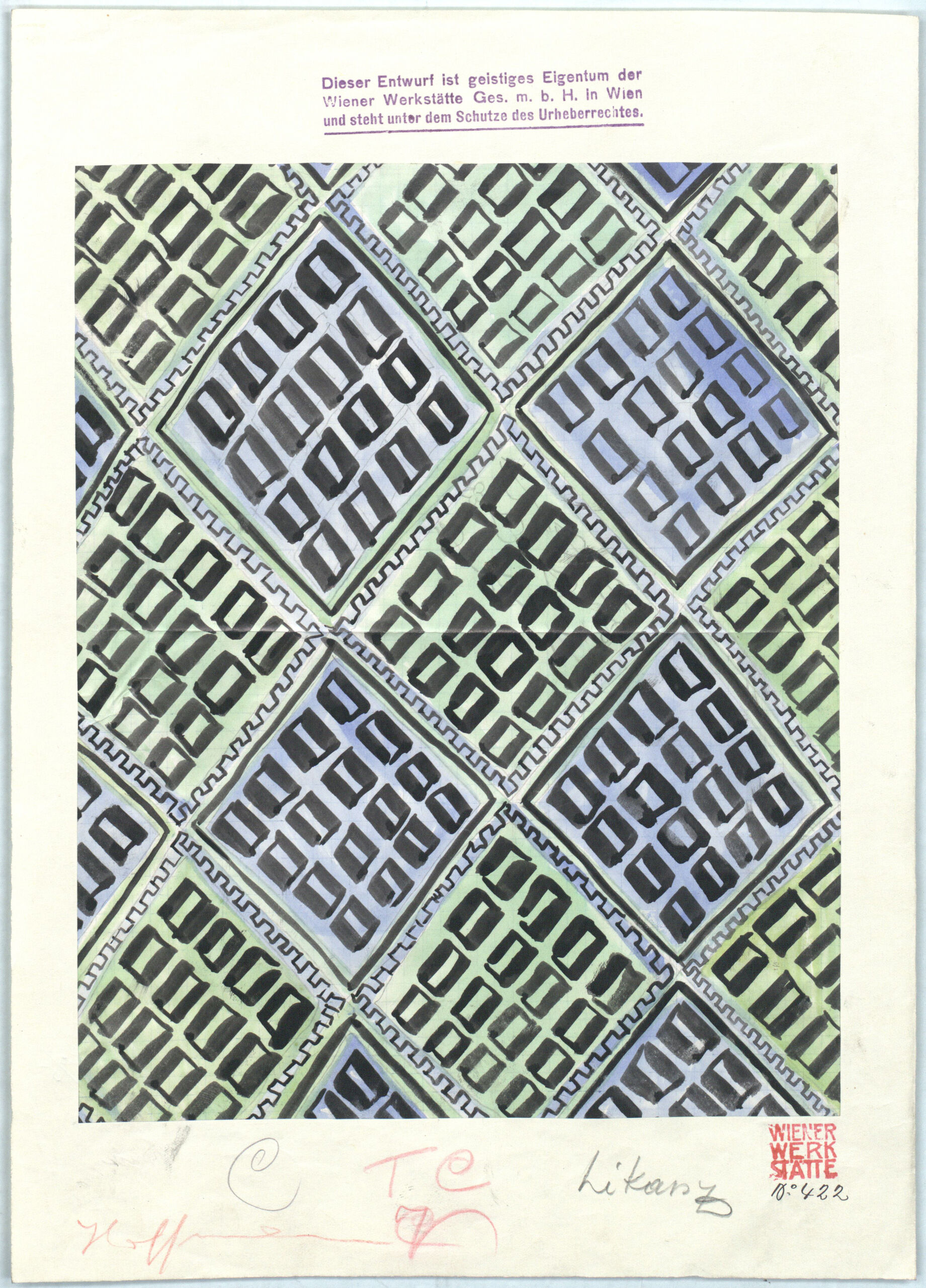 textile design, WW-Stoff für Möbel oder Teppich (?), Wiener Werkstätte, MAK Inv.nr. KI 12352-5
