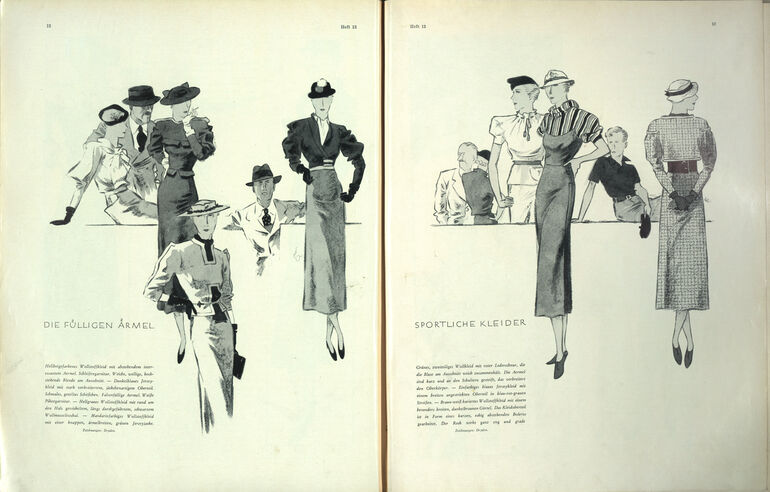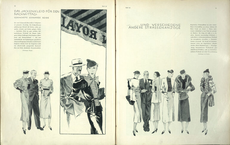 magazine illustration, Zeichnung von Ernst Deutsch Dryden für Zeitschrift "Die Dame" aus: Jg 1931, Heft 10, S. 6 und 7, Ullstein Verlag (Berlin), MAK Inv.nr. BI 18146-1931-10-6-7