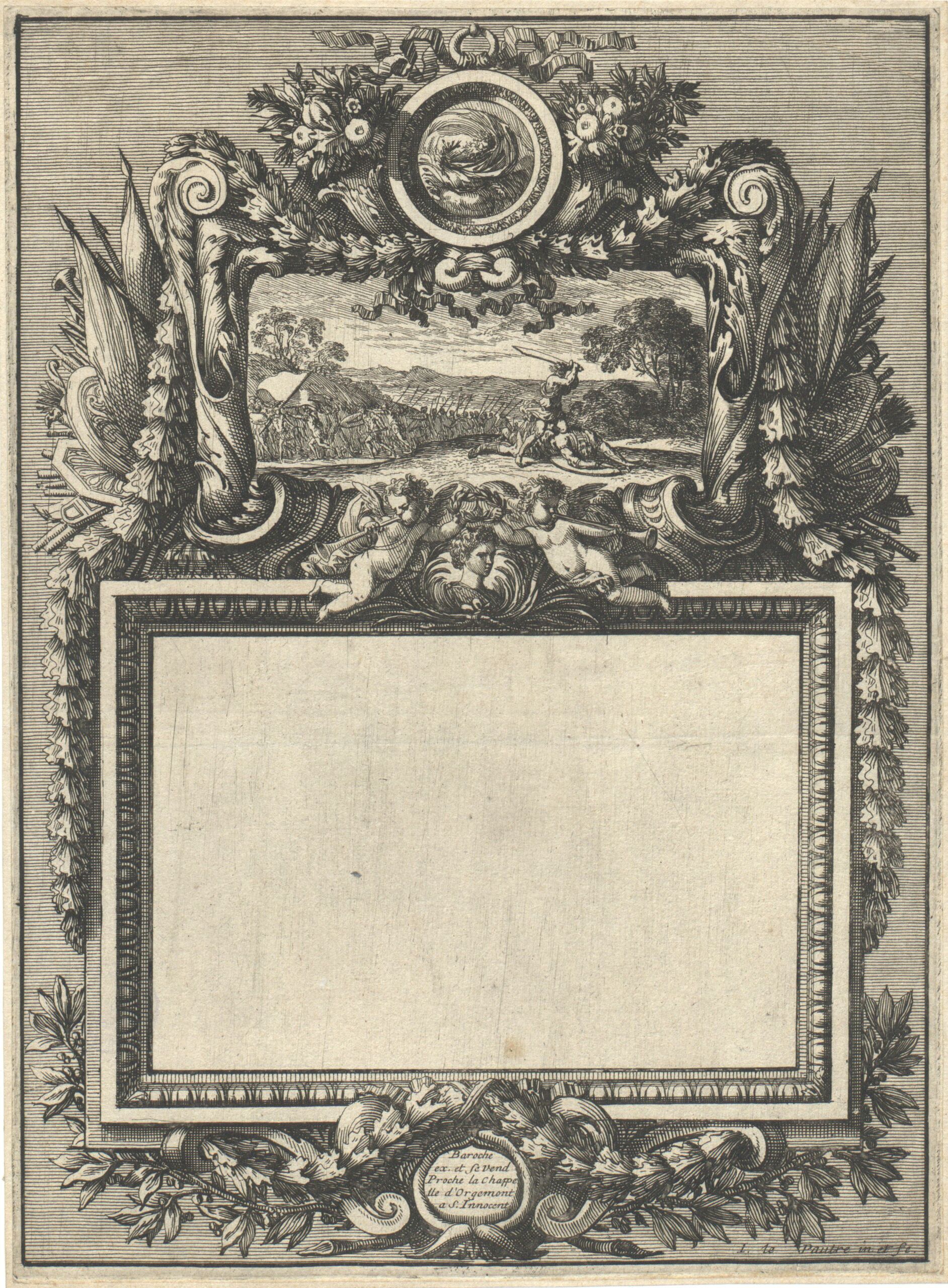 - text on object: Baroche/ ex. et se vend/ Proche la Chappe/ lle d‘ Orgemont/ a S. Innocent / I. le Pautre in et fe.