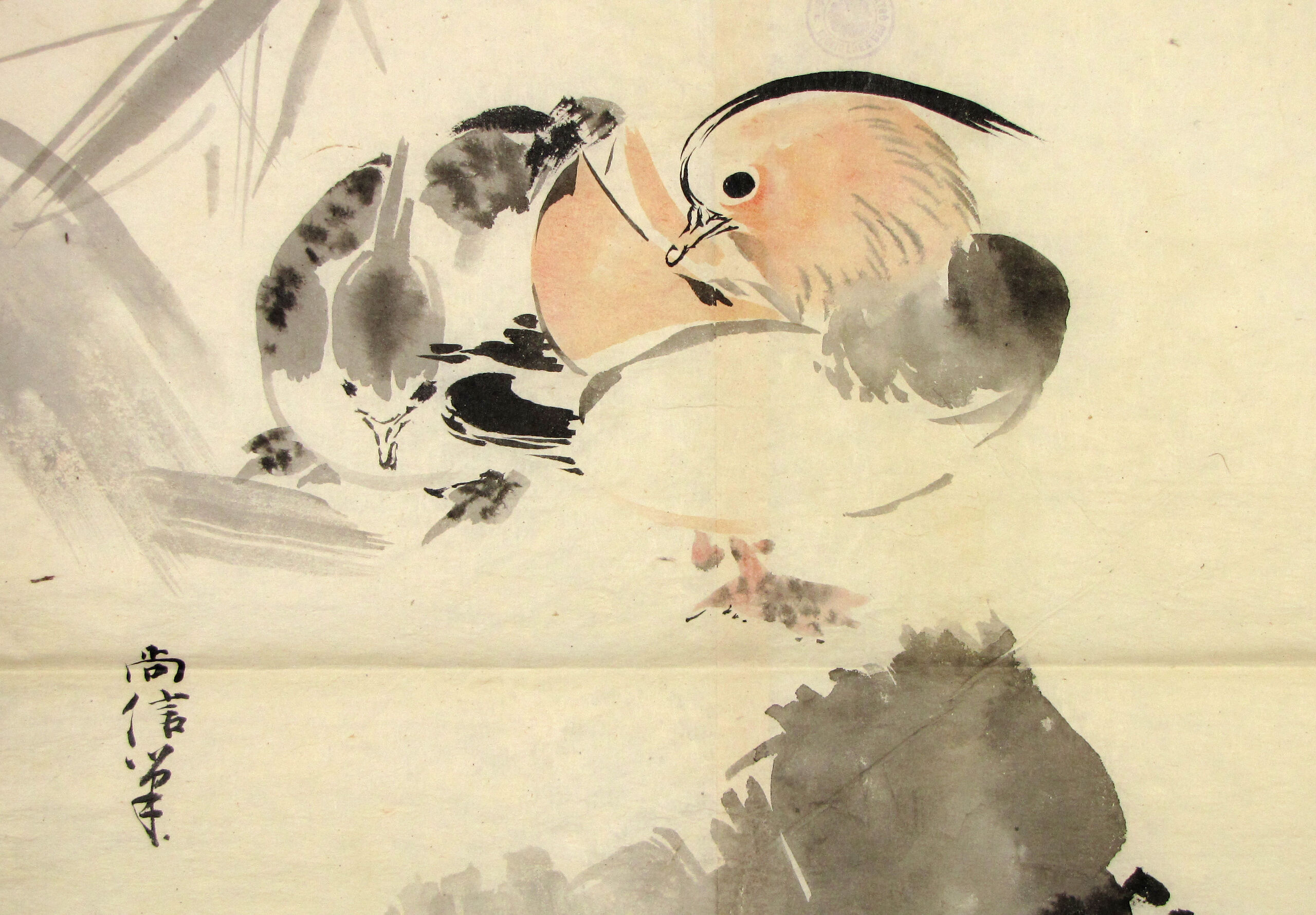 ink wash drawing, Zwei Haubentaucher, Kanō Naonobu 狩野尚信, MAK Inv.nr. HM 14378