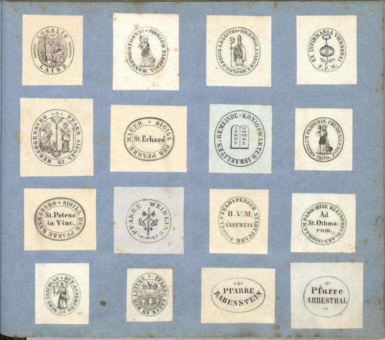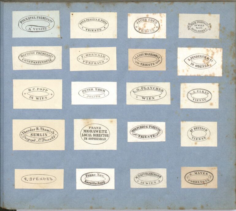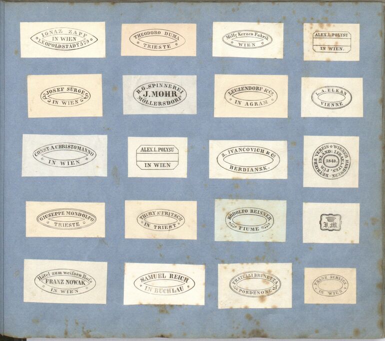 - aus einem Musterbuch mit einer Sammlung von Stempeln und Markenzeichen diverser Firmen, Institutionen und Privatpersonen des Graveuers Ferdinand Ahacic