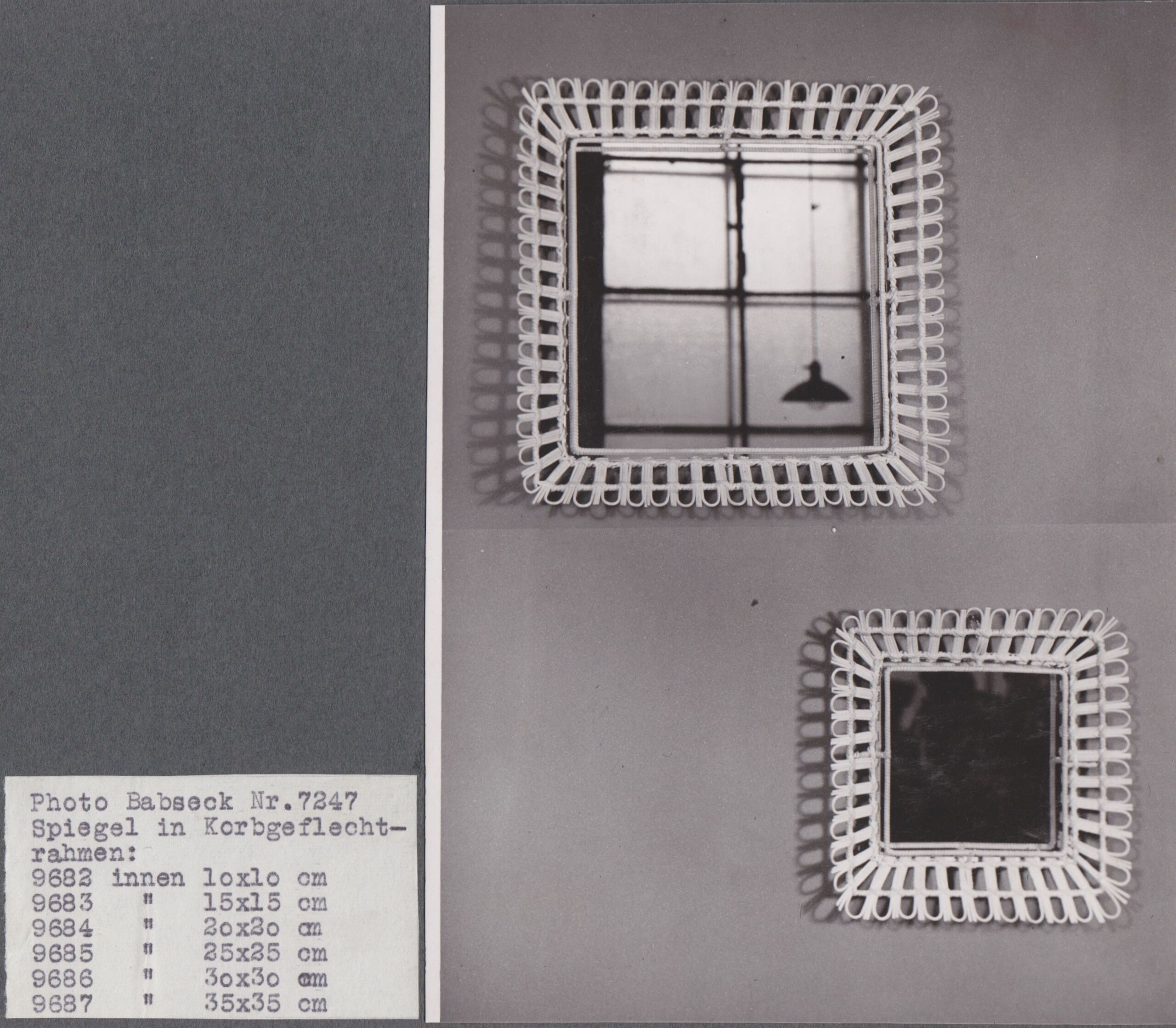 - text: Spiegel in Korbgeflecht-/rahmen: 9682 Ø innen 10x10 cm/9683 Ø innen 15x15 cm/9684 Ø innen 20x20 cm/9685 Ø innen 25x25 cm/9686 Ø innen 30x30 cm/9687 Ø innen 35x35 cm