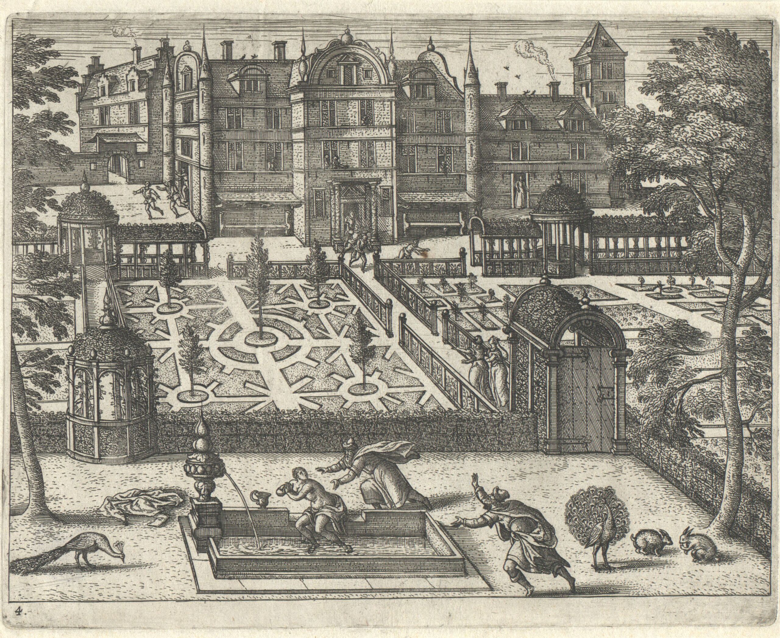 architectural rendering, Ansicht eines Schlosses mit einem Garten, Hans Vredeman de Vries, MAK Inv.nr. KI 1-963-3