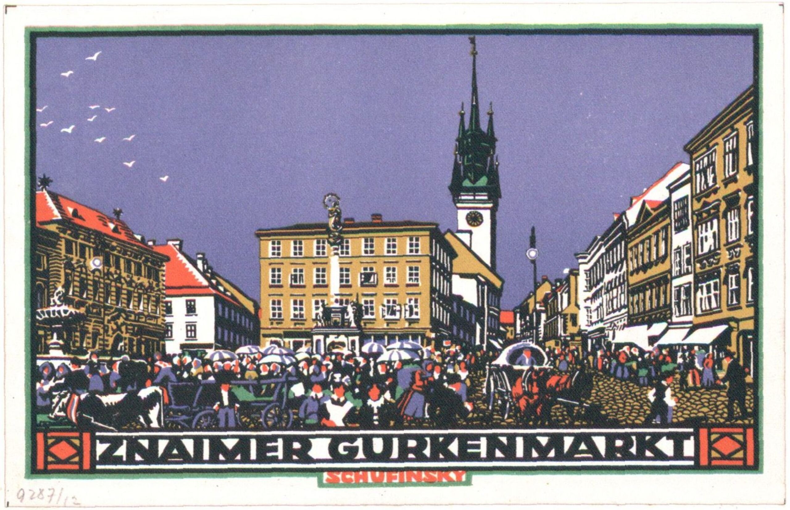 postcard, Ansichtskarte mit dem Gurkenmarkt in Znojmo, Viktor Schufinsky, MAK Inv.nr. KI 9287-12