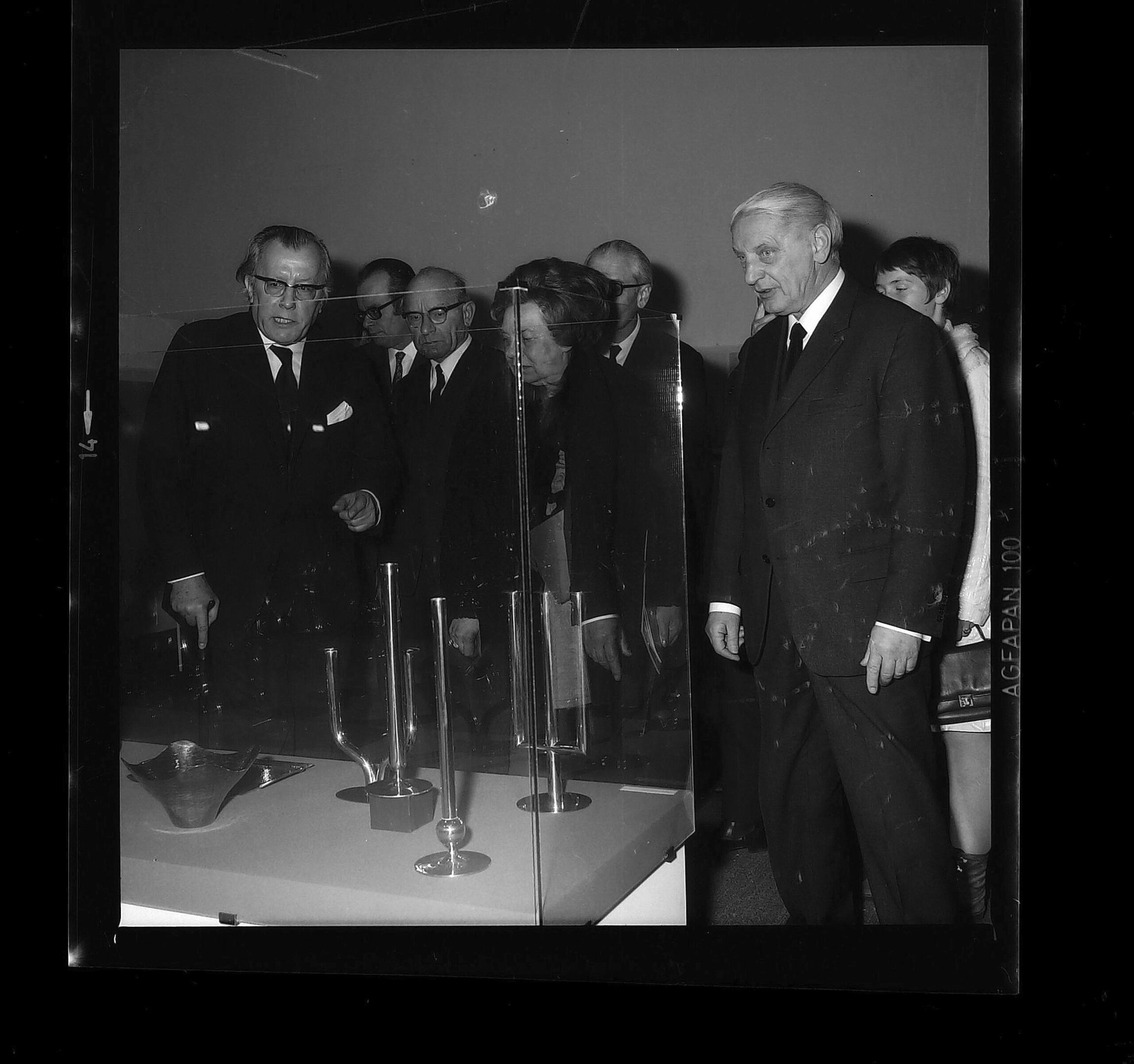 - Direktor Wilhelm Mrazek, Ministerin Hertha Firnberg und Franz Hagenauer (1. Reihe v. li nach re.), Eröffnung der Ausstellung "Werkstätten Hagenauer 1898-1971 und Meisterklasse für freies Gestalten in Metall an der Hochschule für angewandte Kunst" im Österreichischen Museum für angewandte Kunst, Wien, 12. März bis 12. April 1971 (given title)