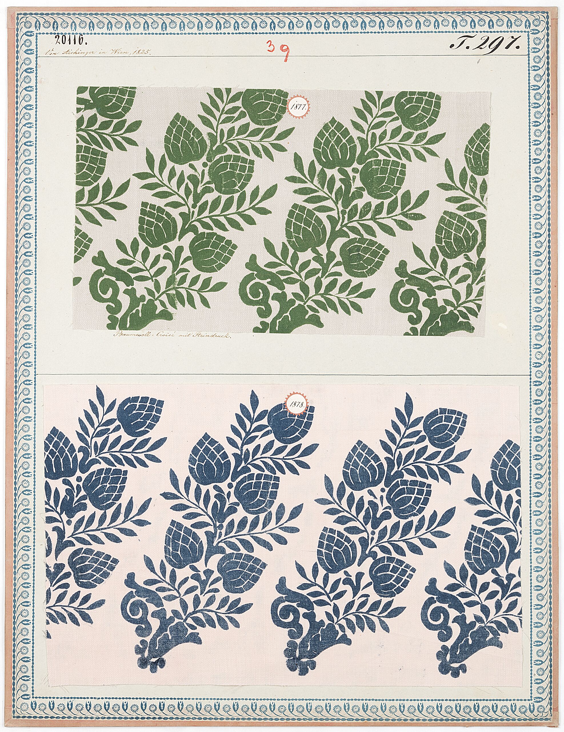 - label (front) : Von Aichinger in Wien, 1825. / Baumwoll-Croisé mit Steindruck.