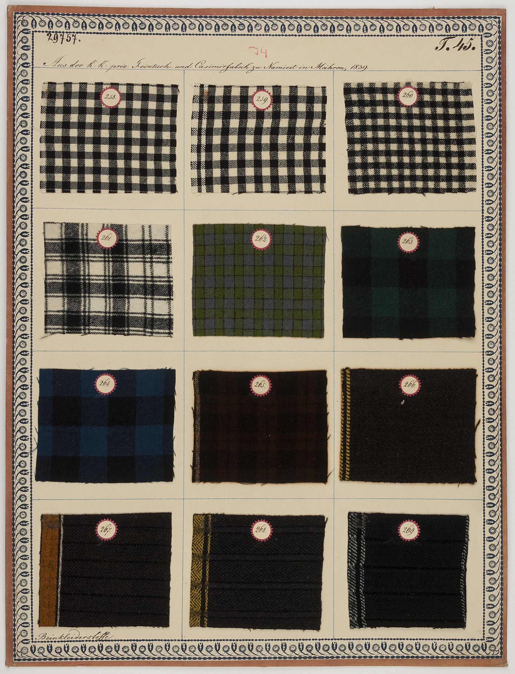 - label (front) : Aus der K: K: priv: Feintuch- und Casimirfabrik zu Namiest in Mähren, 1839. / Beinkleiderstoffe.