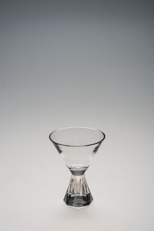 - Dieses sehr elegante Service für Bier mit schwachen Überfang schmückt ein raffinierter Schliff, der auf der Oberfläche langgezogene Dreiecke bildet. Laut der erhaltenen Verzeichnissen an Arbeiten, die angeboten und dann durch Artél nach Wien versandt wurden, figuriert es unter der Produktnummer 38 R für einen Preis von 50 Kronen. Wo dieses Service gefertigt wurde, ist unbekannt, jedoch könnte es sich nach ähnlichen, zeitlich identischen Erzeugnissen mit schwachen Überfang um die Firma Jan Oertel in Haida handeln, die einige Jahre später ähnliches Glas produzierte