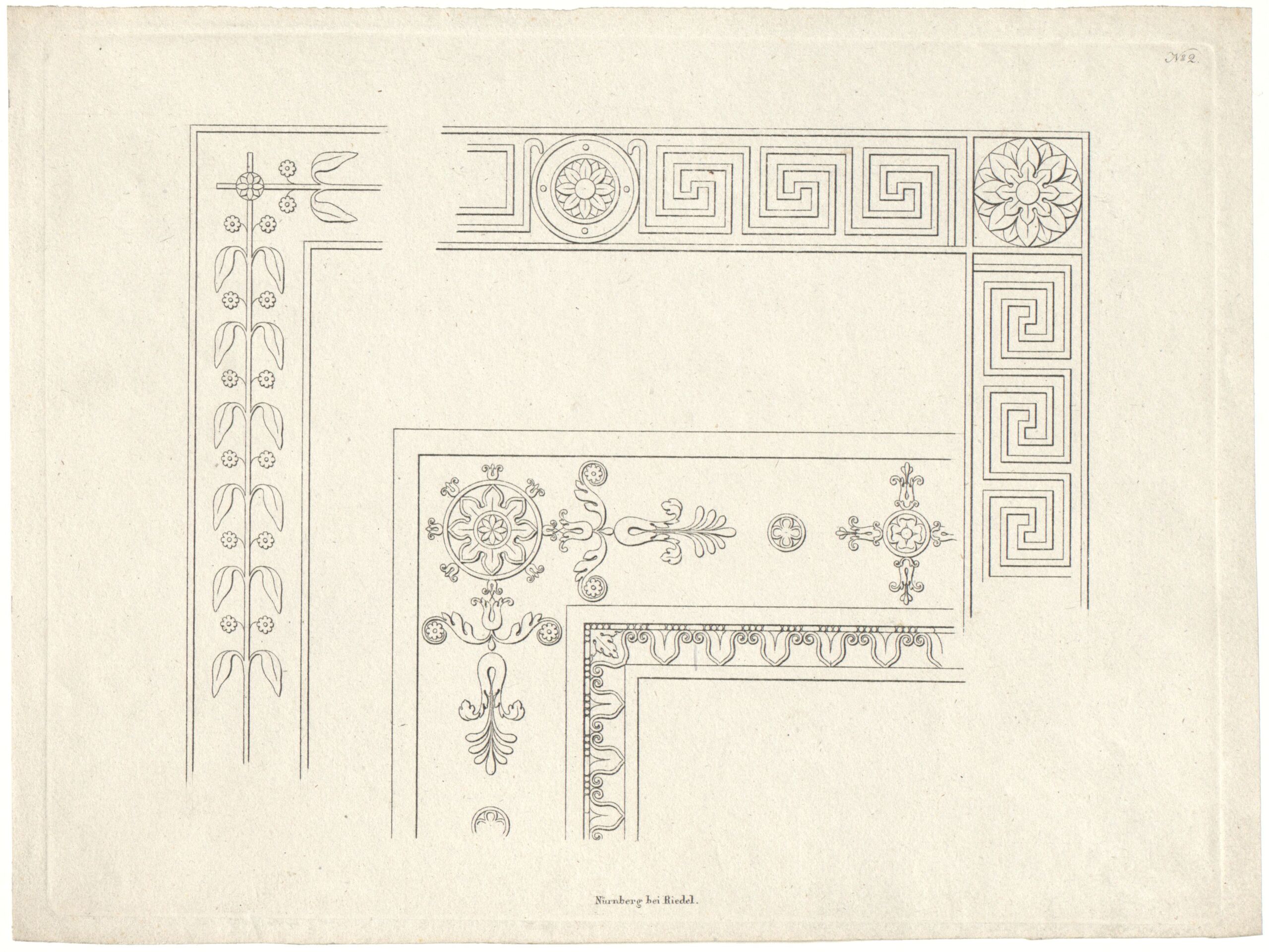 - Blatt 2 aus einer Folge von Vorlagen für die Innenausstattung, herausgegeben von Riedel, in Heideloff´s Manier (given title)