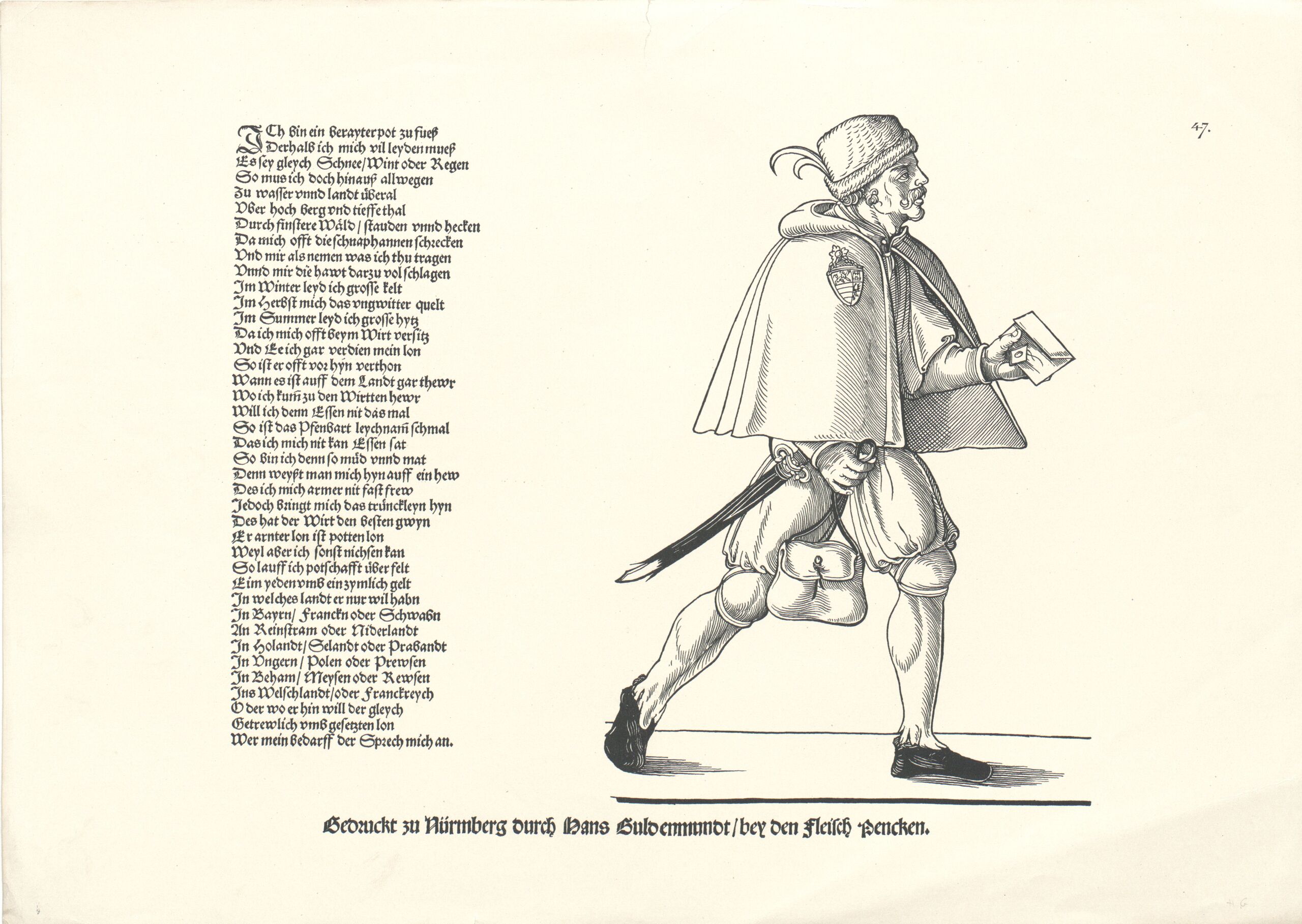 - Blatt 47 aus einer Folge von Reproduktionen nach Holzschnitten (Edelleute und Soldaten) von Hans Guldenmund (given title)