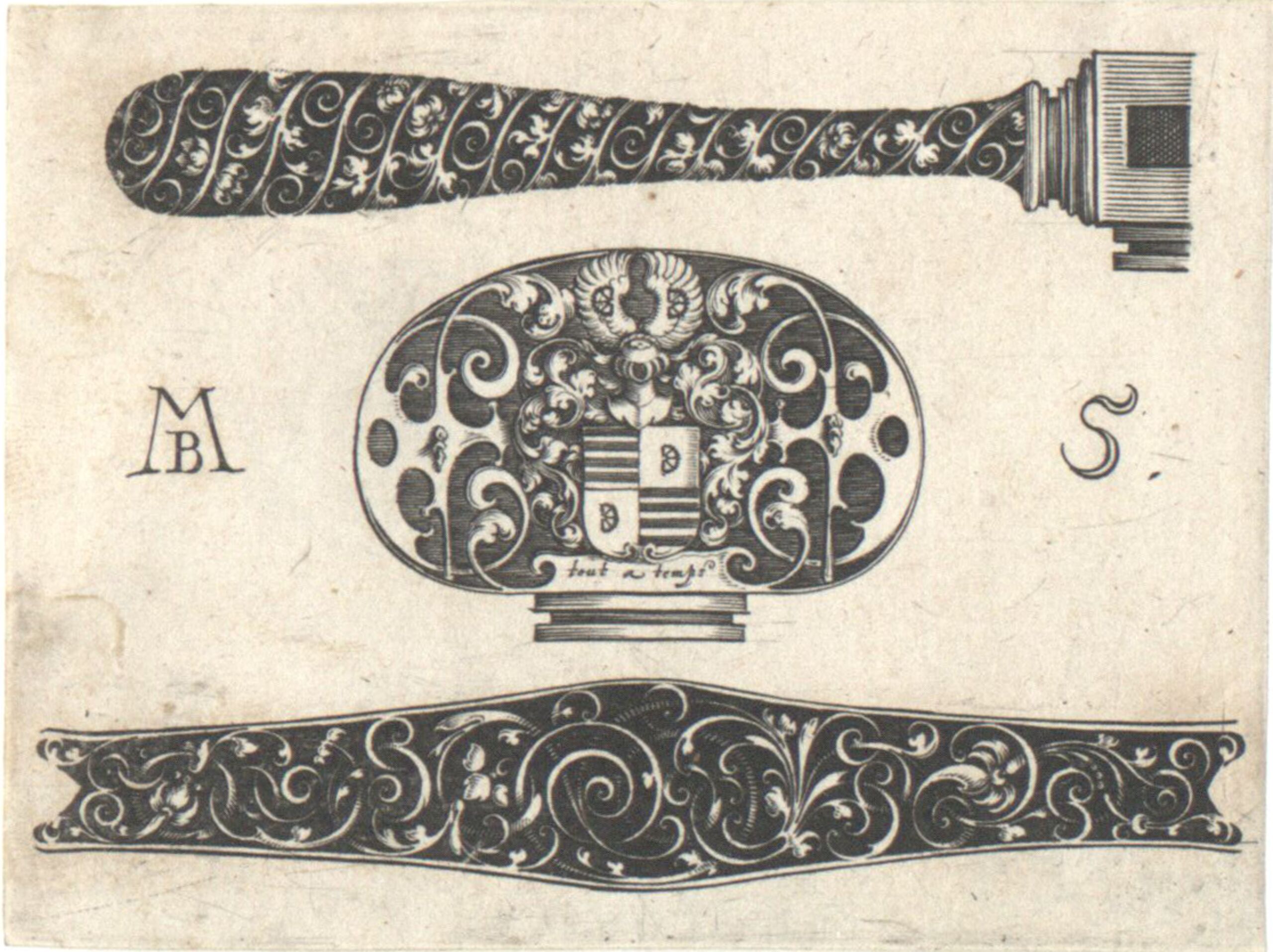 ornamental engraving, Blatt 5 aus der Folge H von Degenteilen, herausgegeben von M. Le Blon, erster Zustand, Michel Le Blon, MAK Inv.nr. KI 2257-11