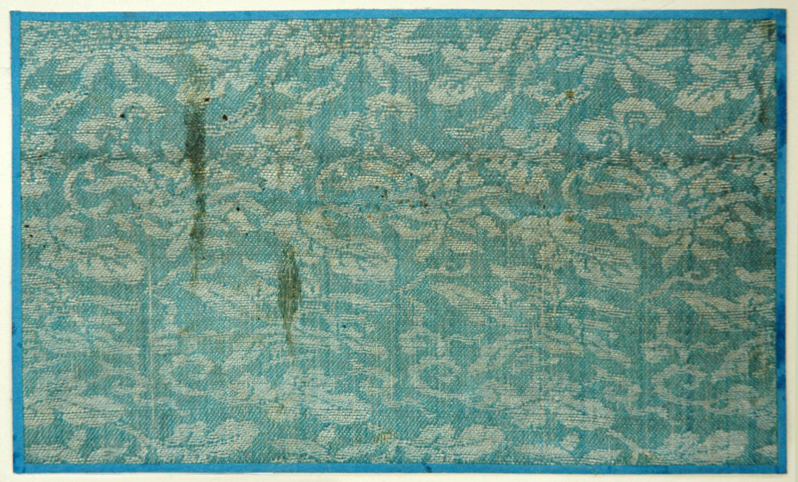 - Blüten und Ranken in weiß auf hellblauem Grund