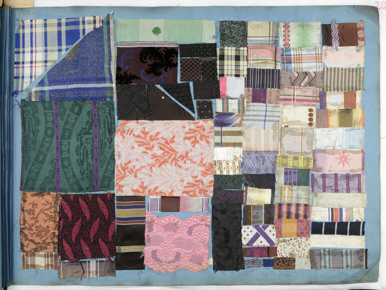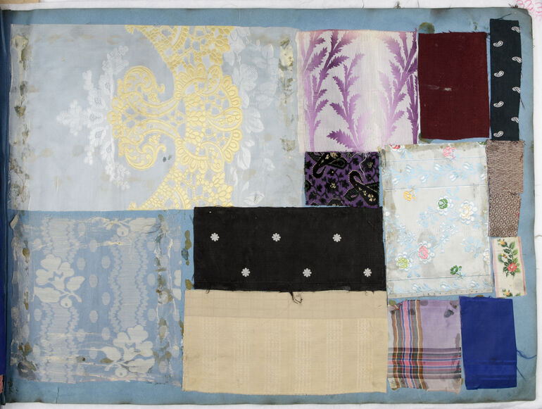 page of a pattern book, Blumenmuster (Kirchenstoff), Streifen, Karo, Streu- u. und orientalische Muster, Anton Martin, MAK Inv.nr. T 8175-39