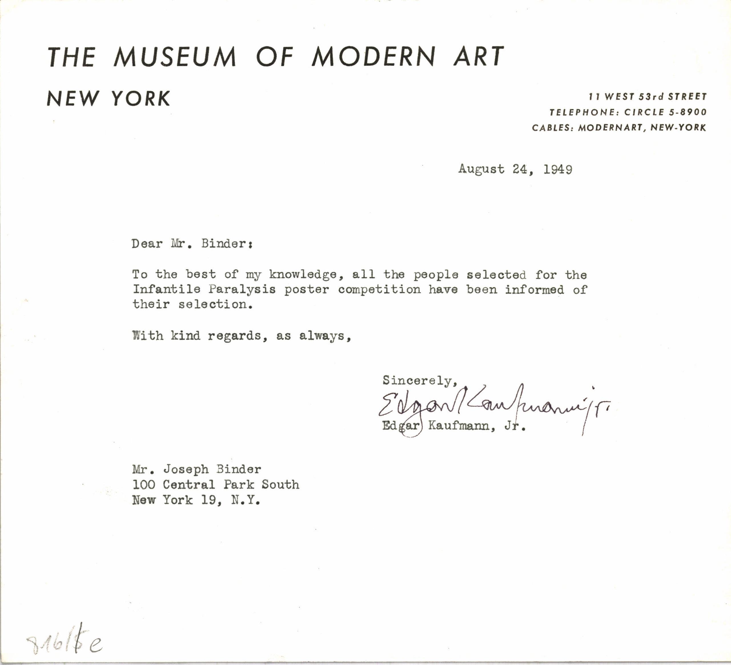 , 1949 - Empfänger: Joseph Binder