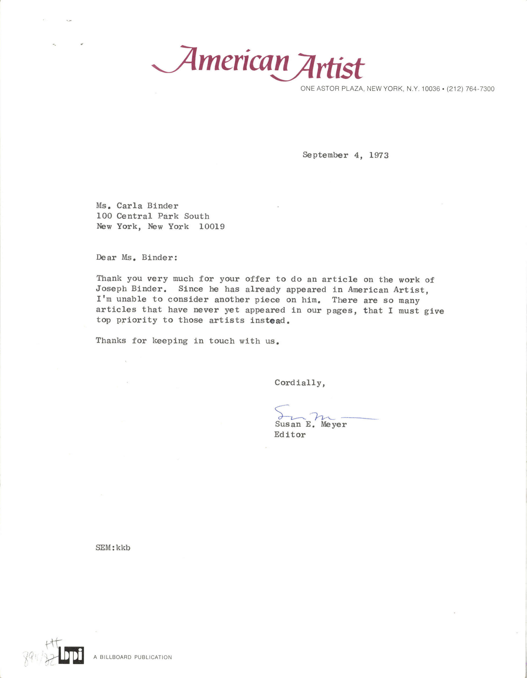 - Brief von "American Artist" (given title)